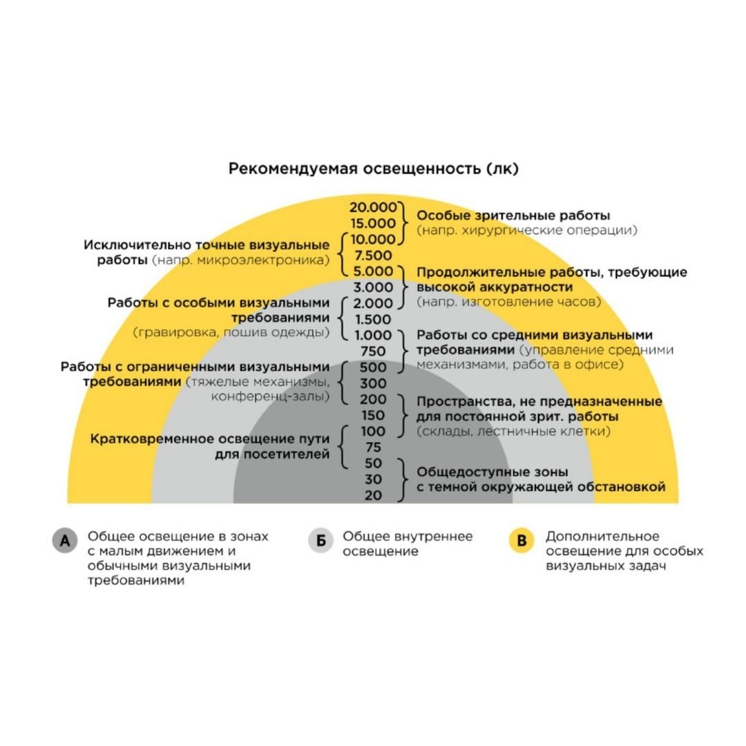 Нормы освещённости помещений в люменах
