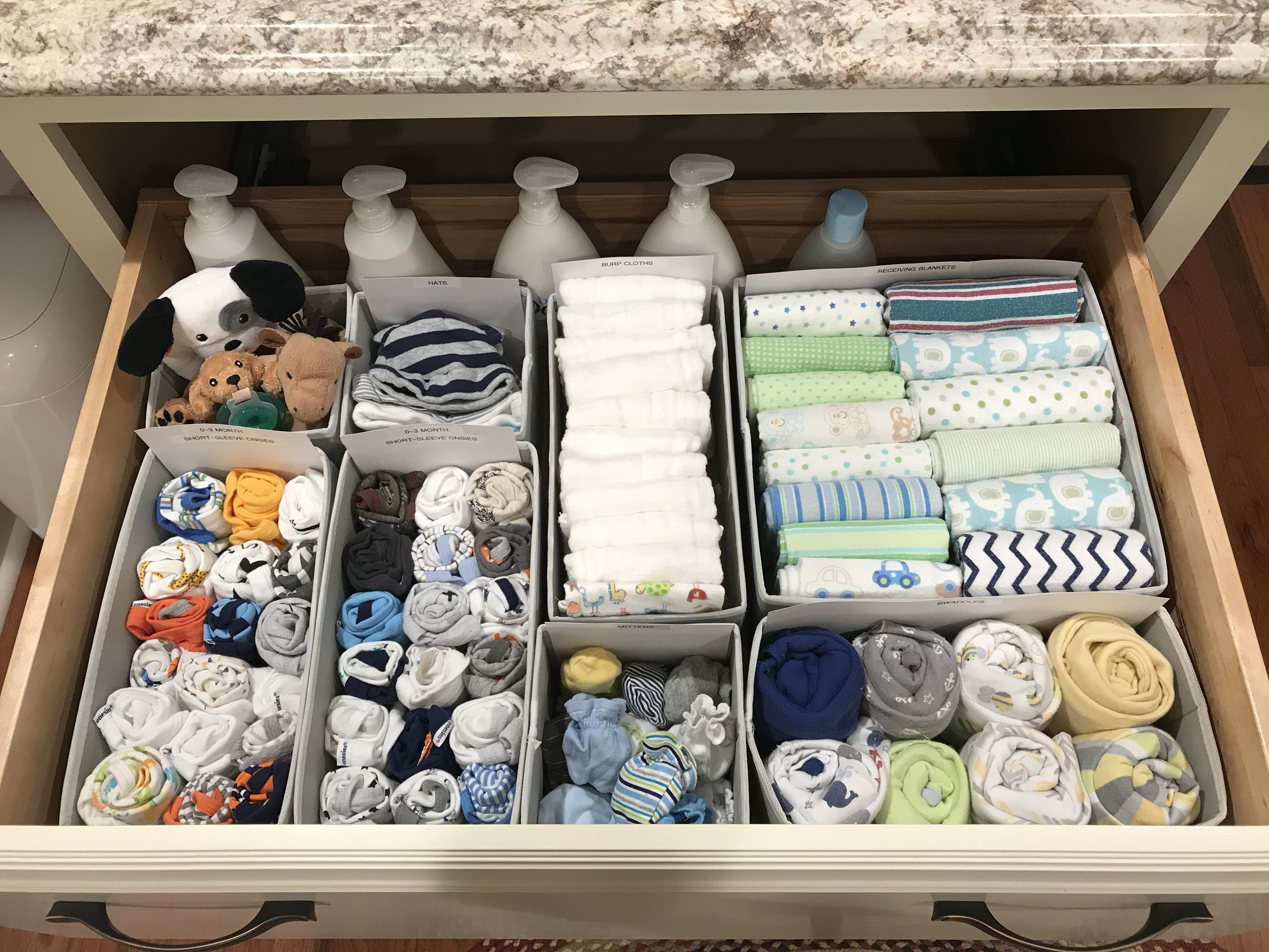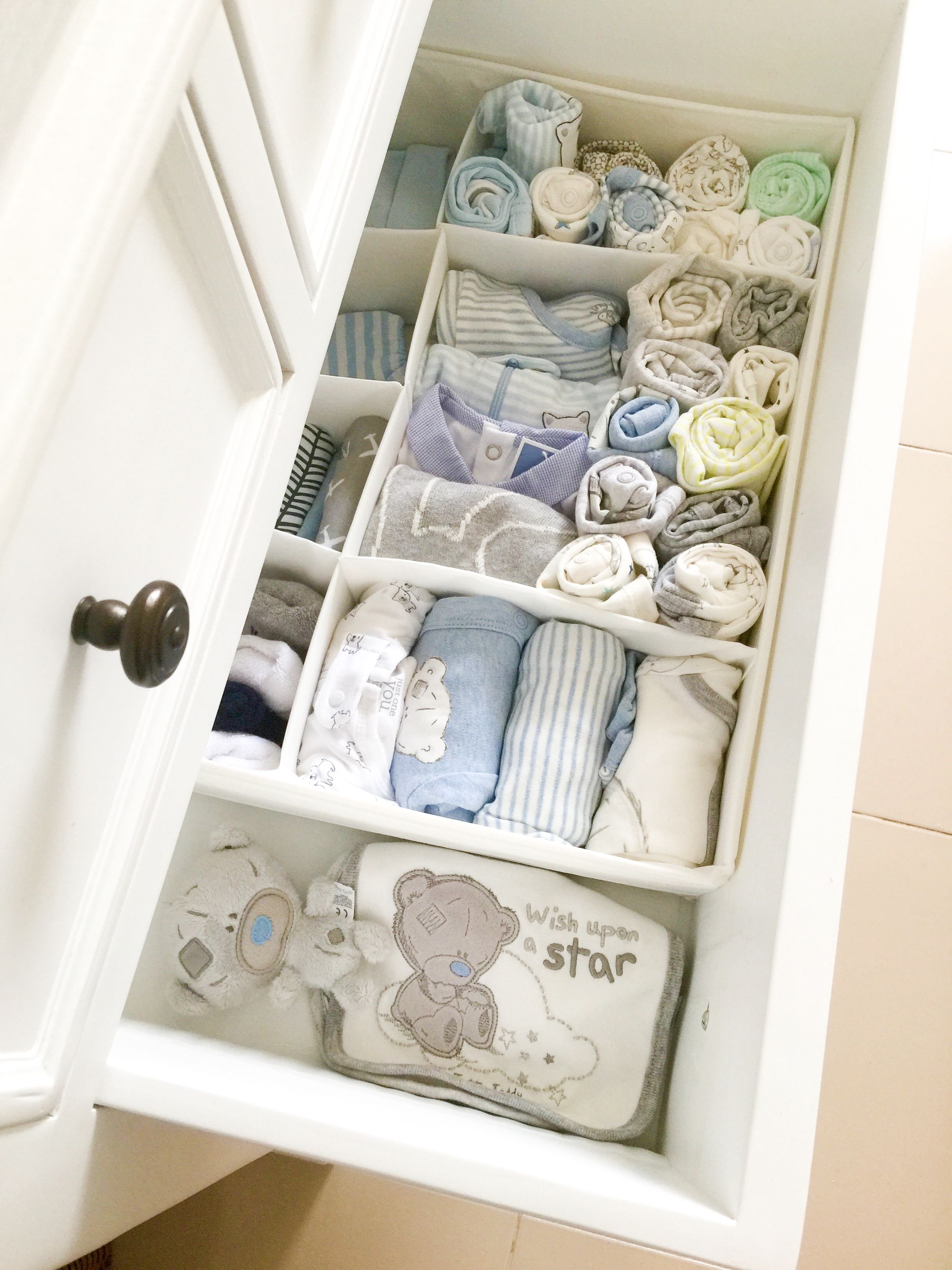 Организация вещей в комоде для новорожденного