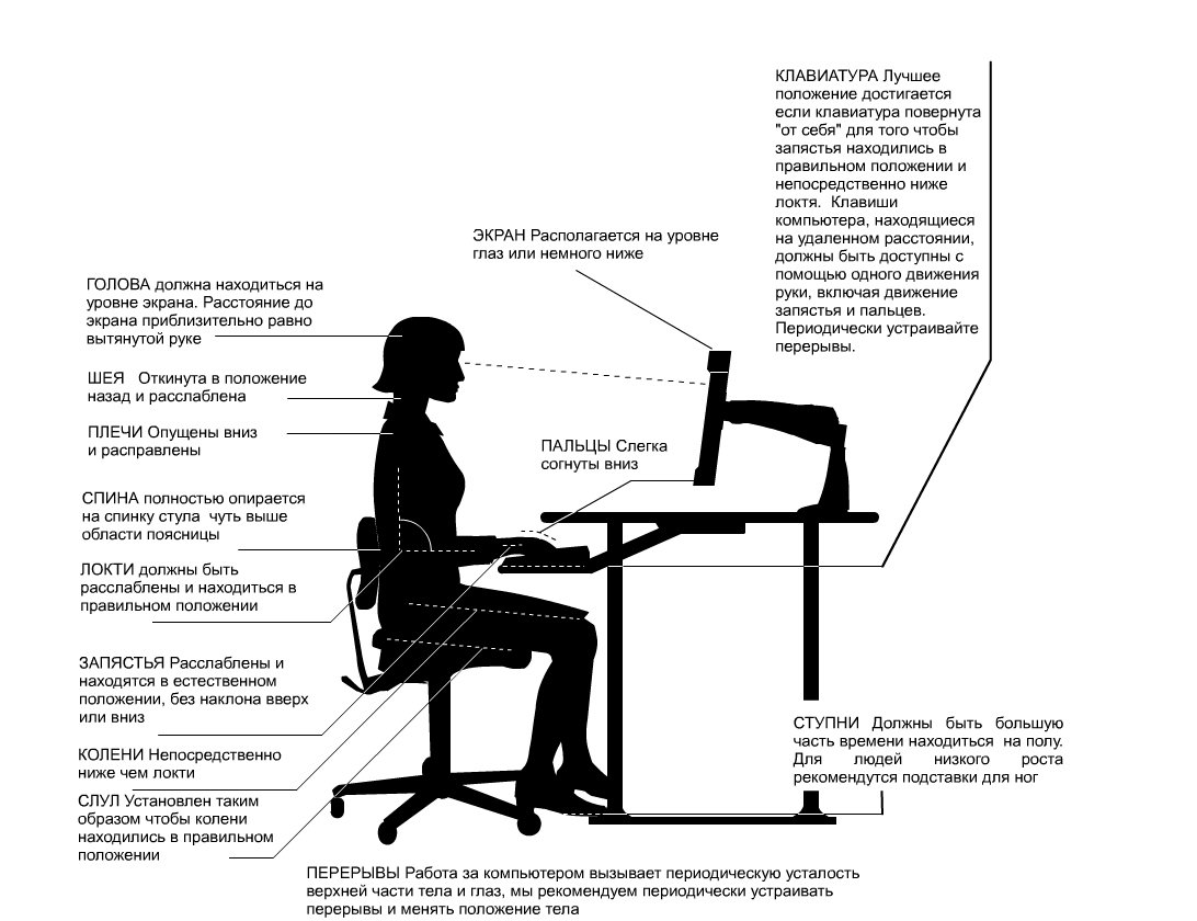 Эргономика рабочего места с персональным компьютером рисунок