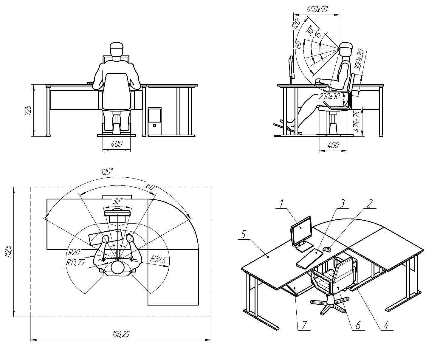 Эргономические параметры рабочего места чертеж