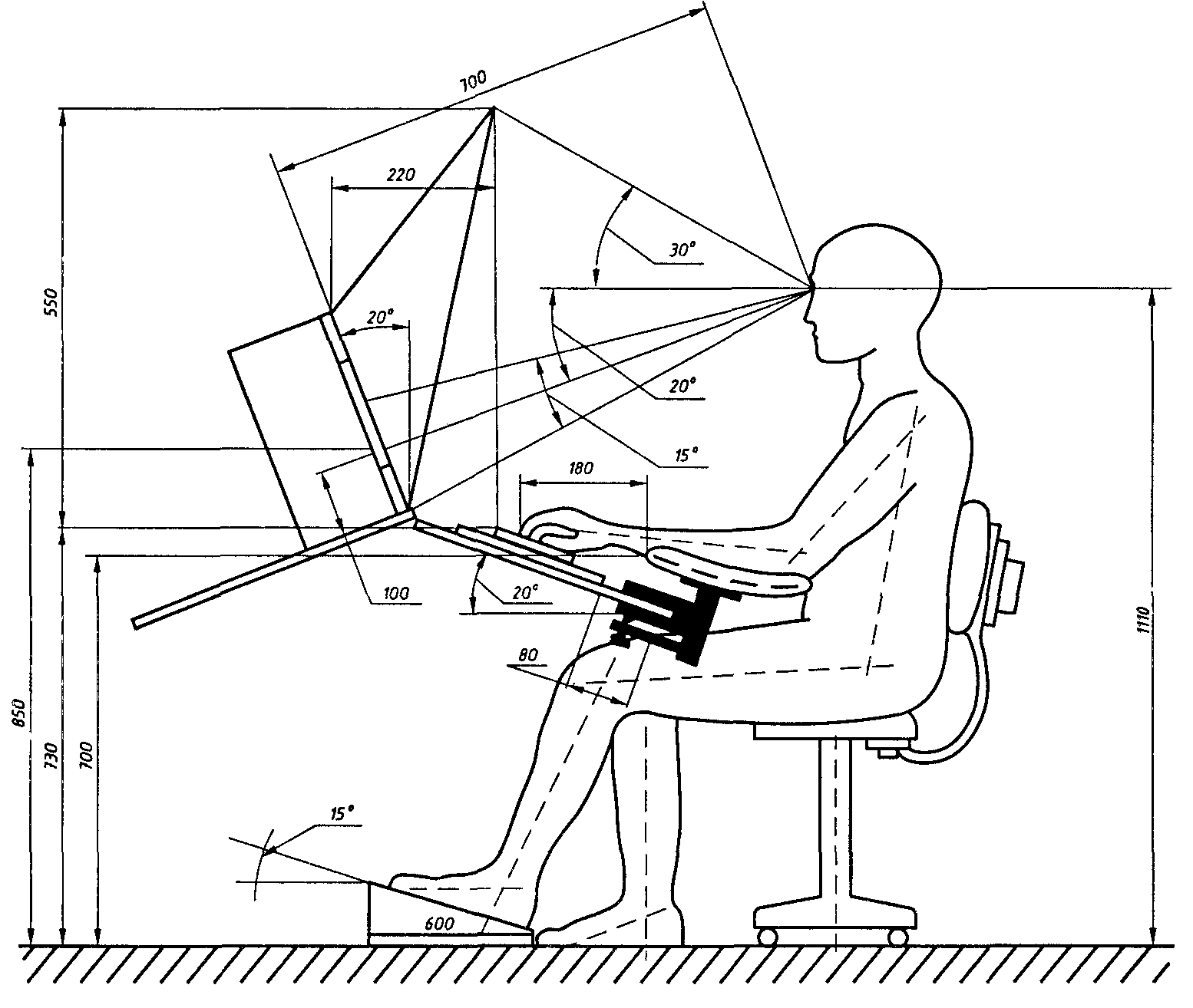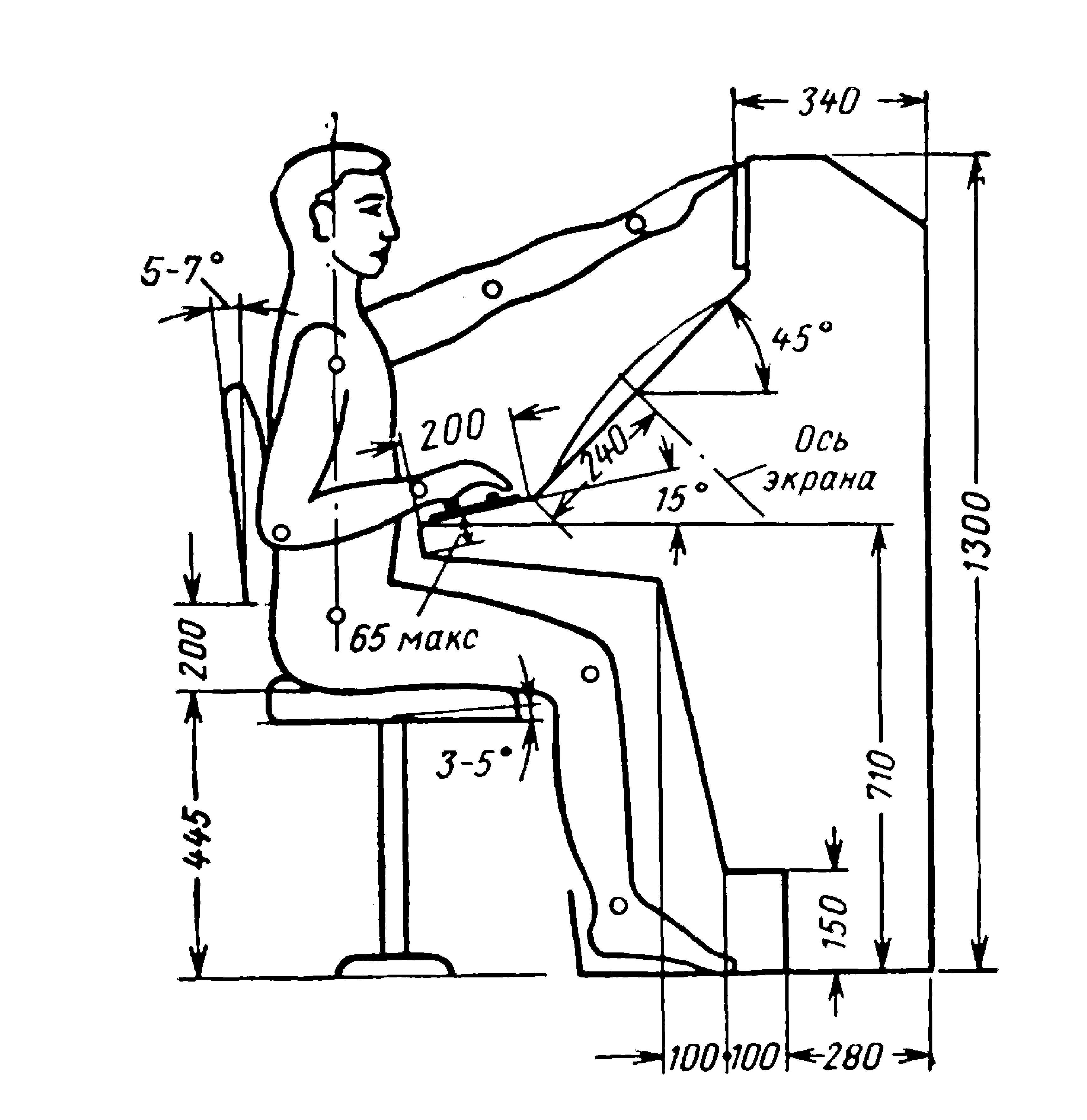 Эргономика рабочего места за компьютером чертеж