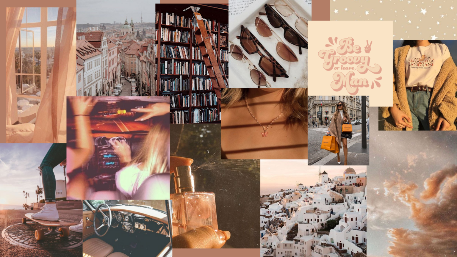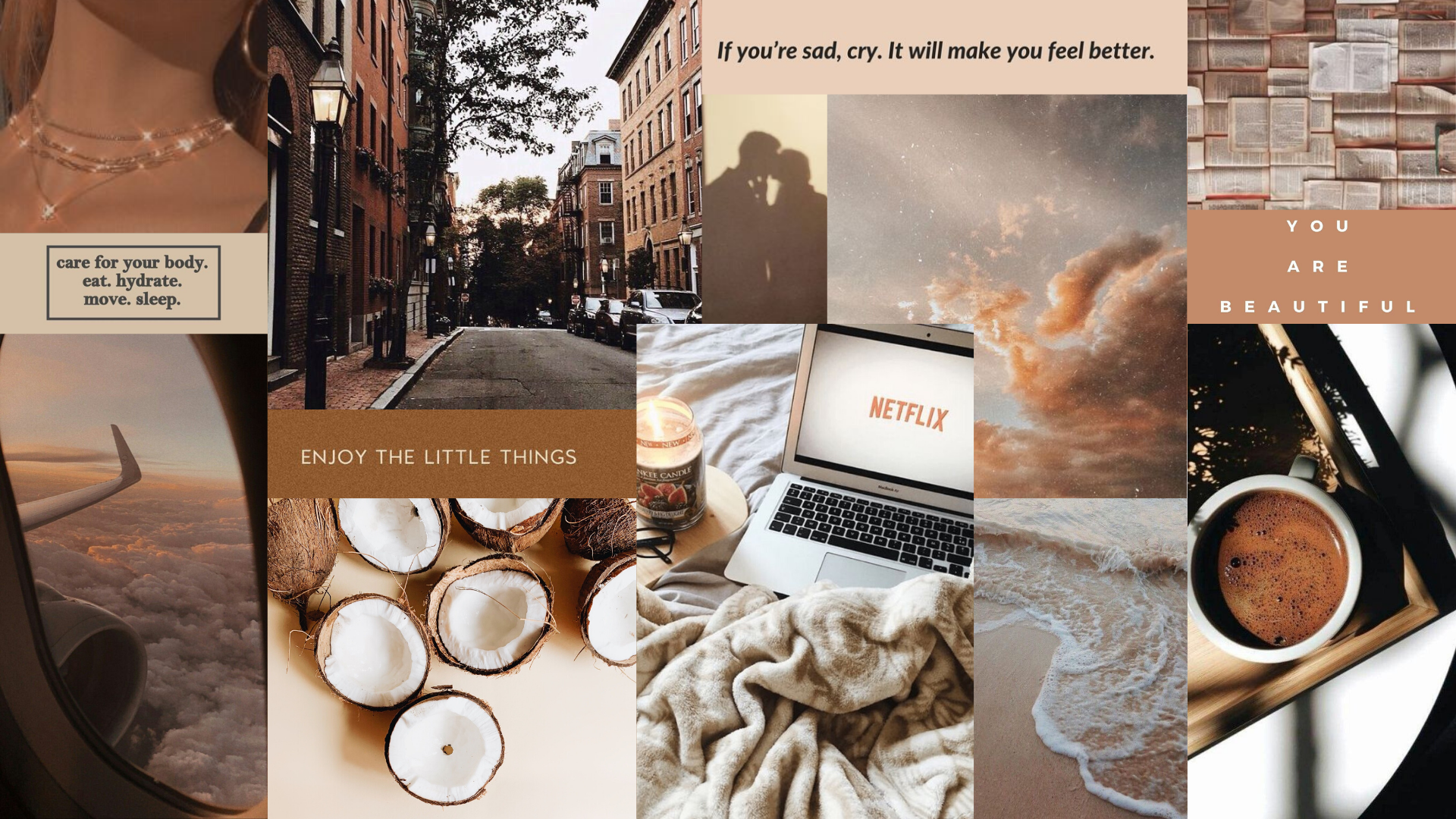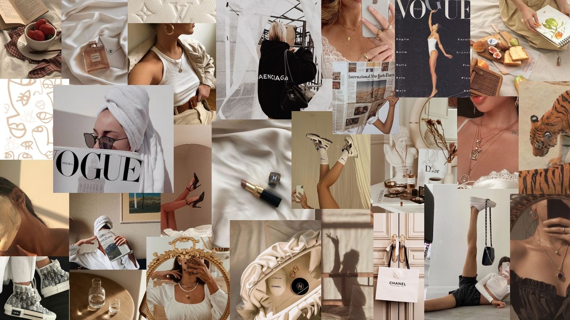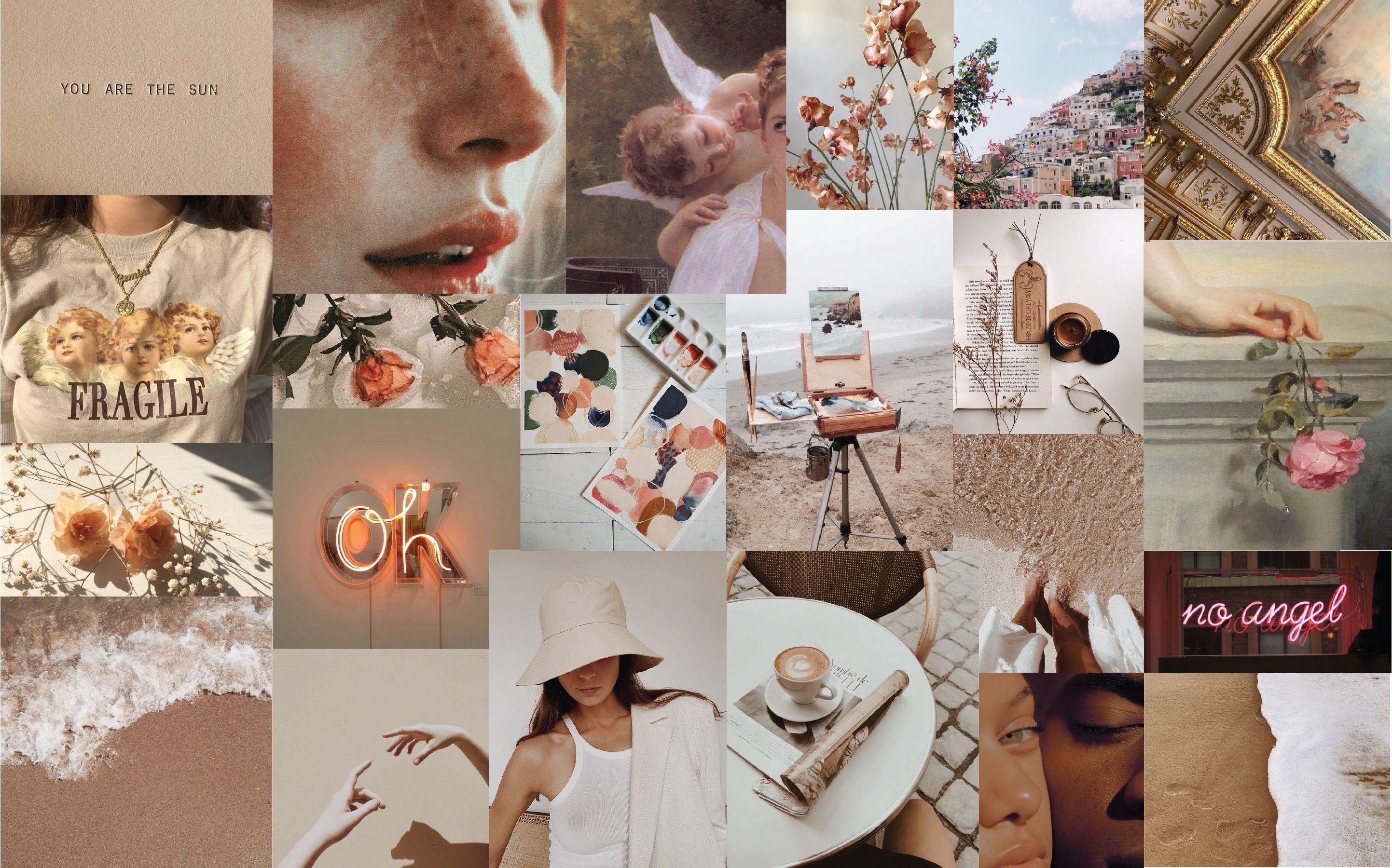 Коллаж в бежевых тонах для рабочего стола aesthetic