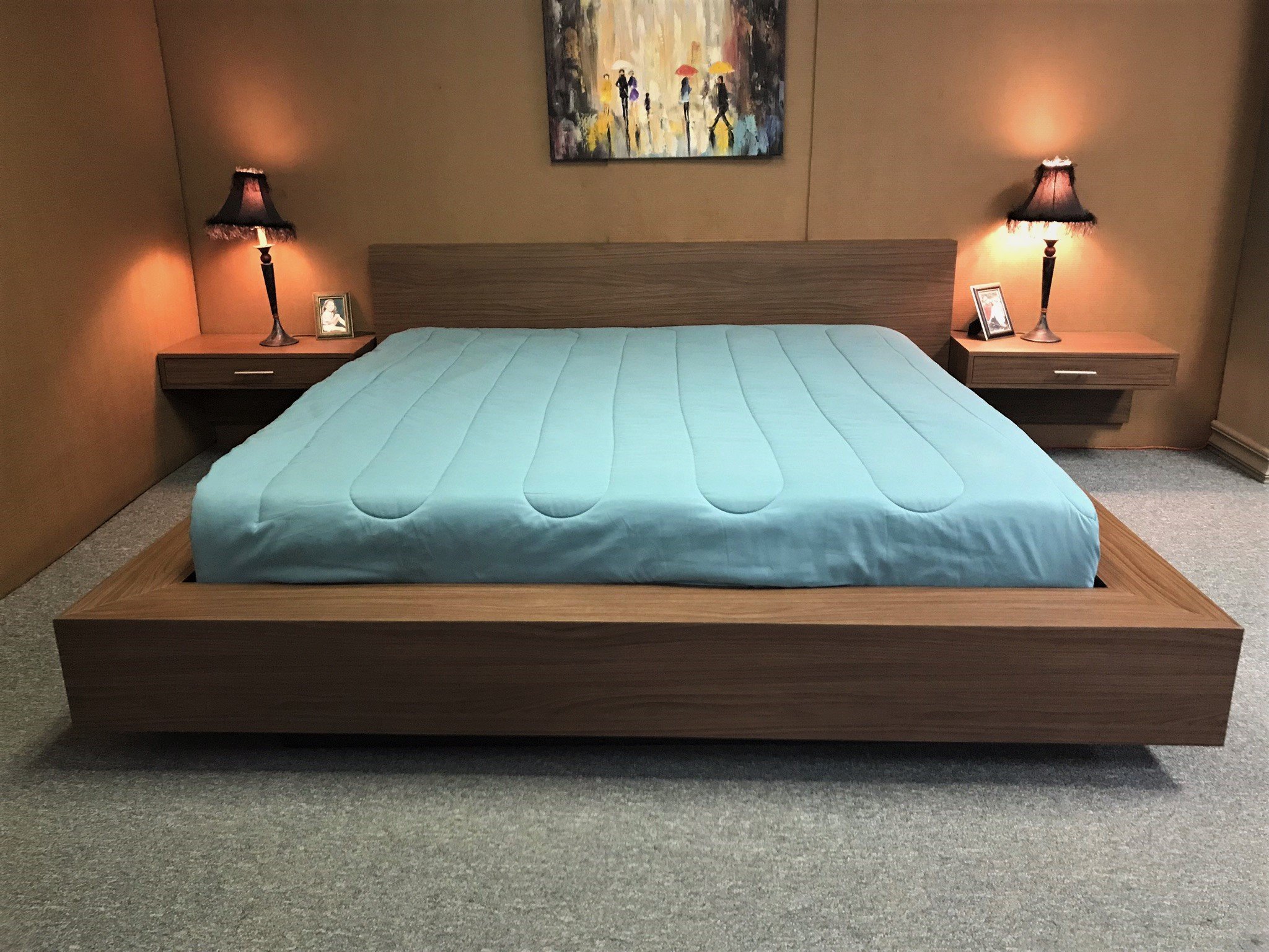 Парящая кровать с выдвижными ящиками