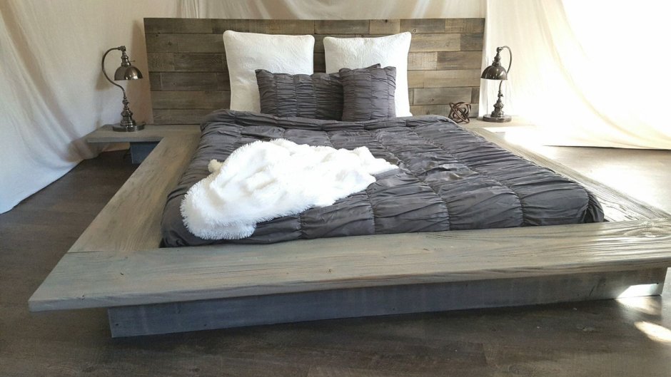 Двуспальная кровать из досок