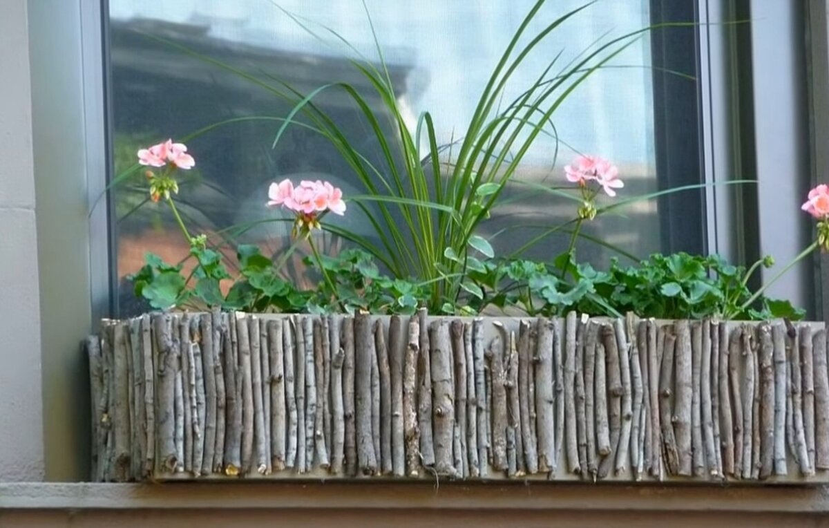 Кашпо из дерева на подоконник