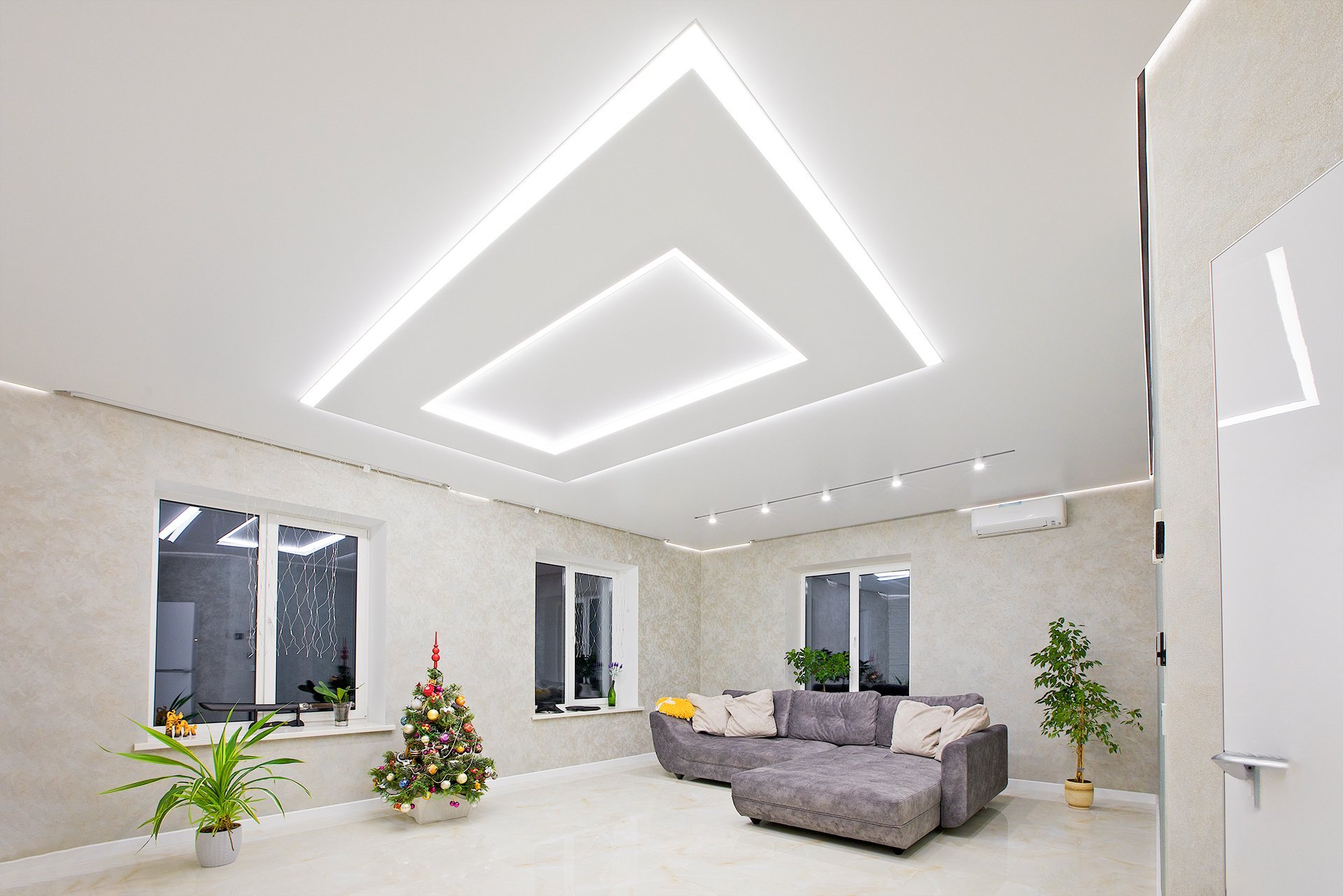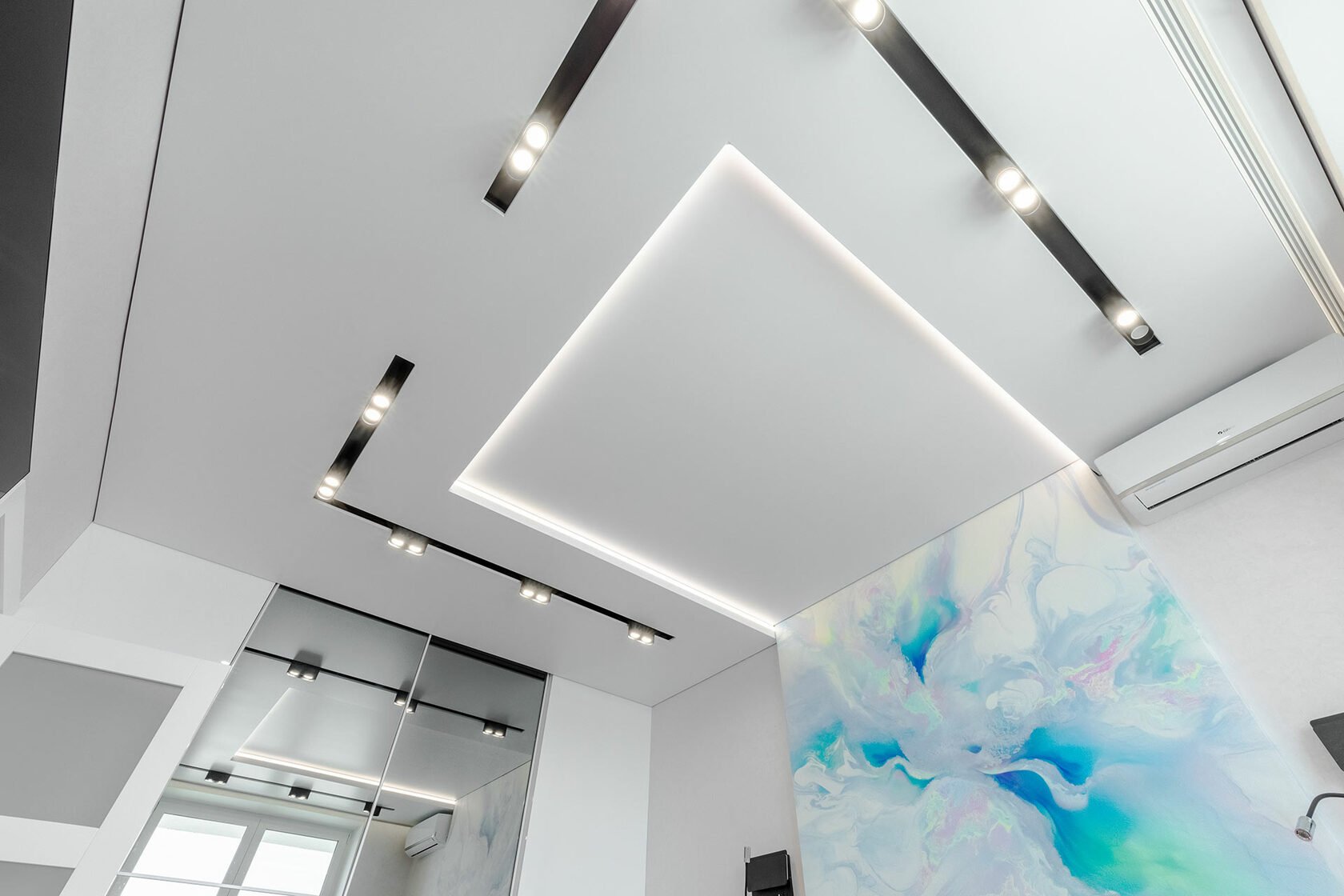 Парящий потолок со световыми линиями