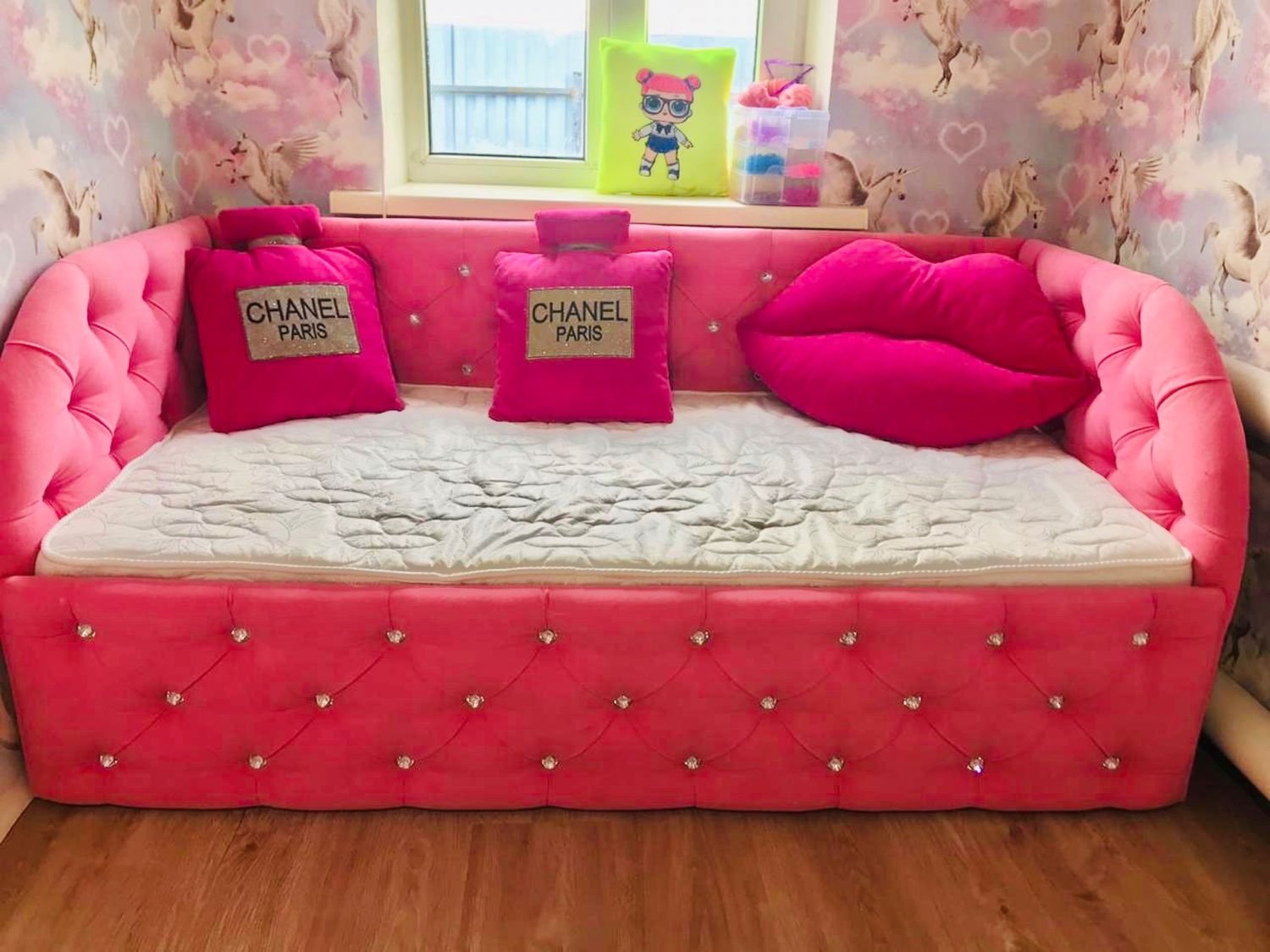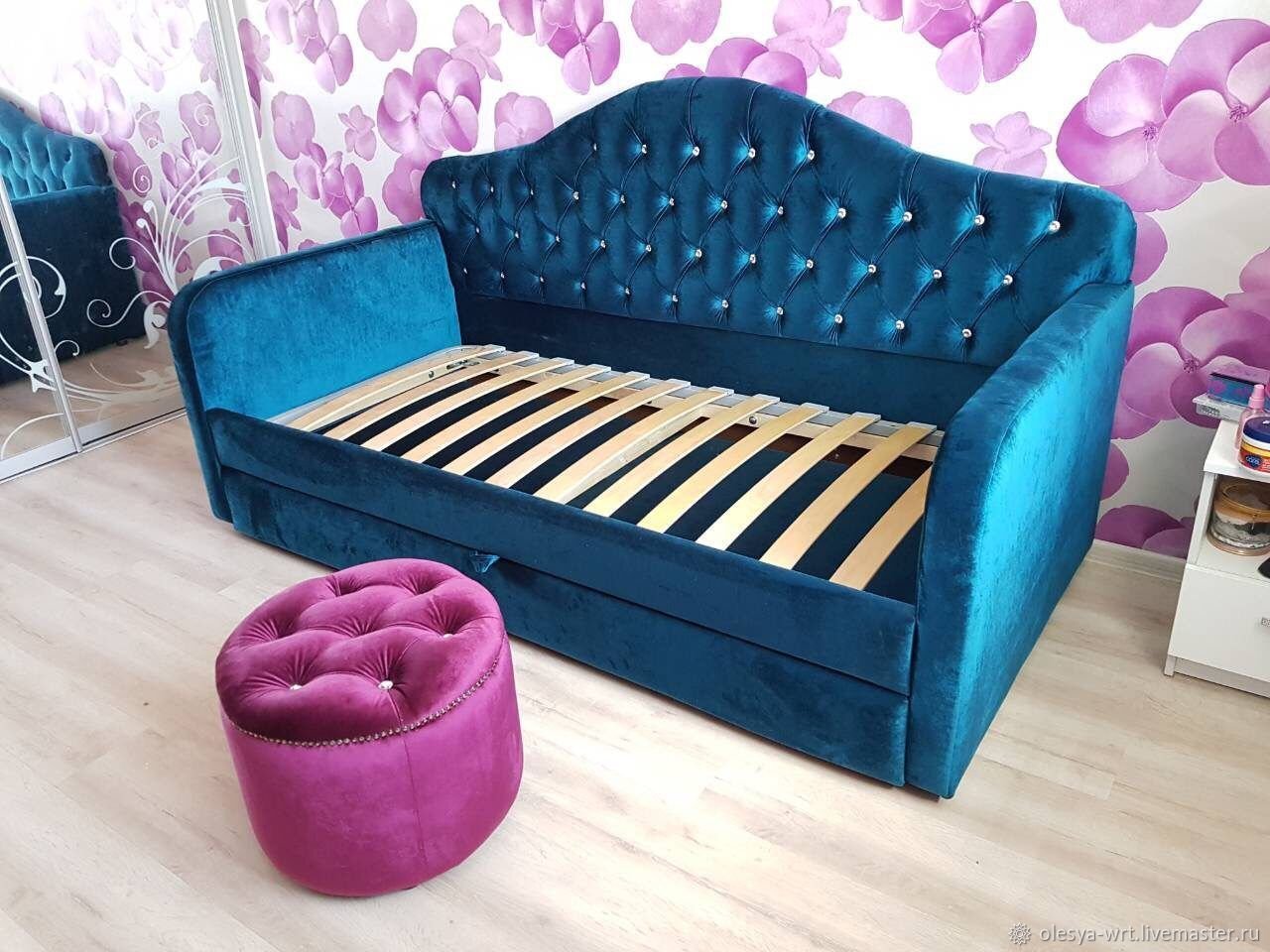 Кровать для девочки подростка с каретной стяжкой