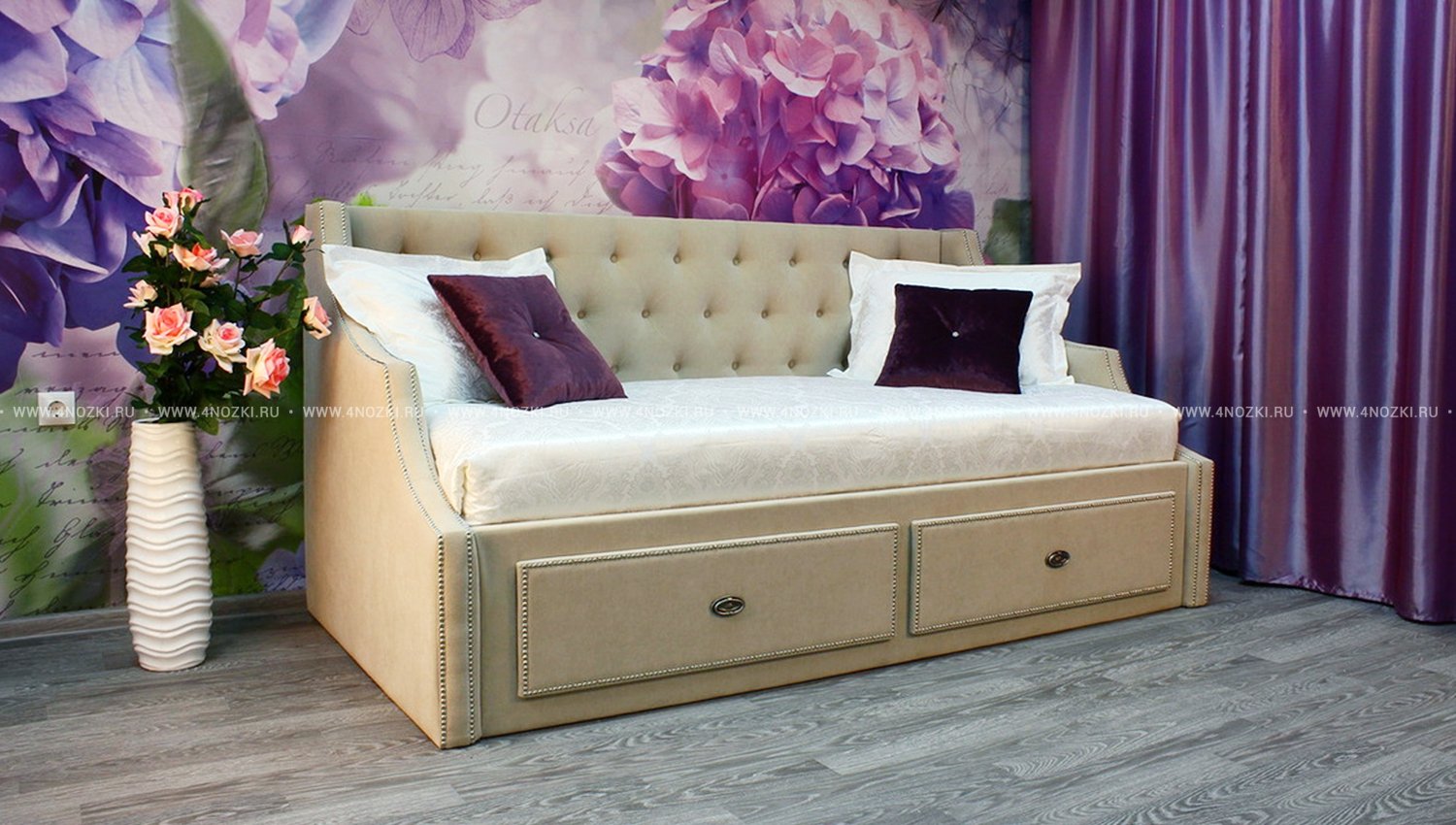 Кровать "Арабелла" с каретной стяжкой, с ящиками