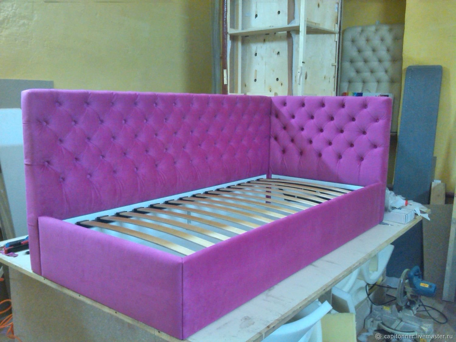 Угловая кровать с каретной стяжкой