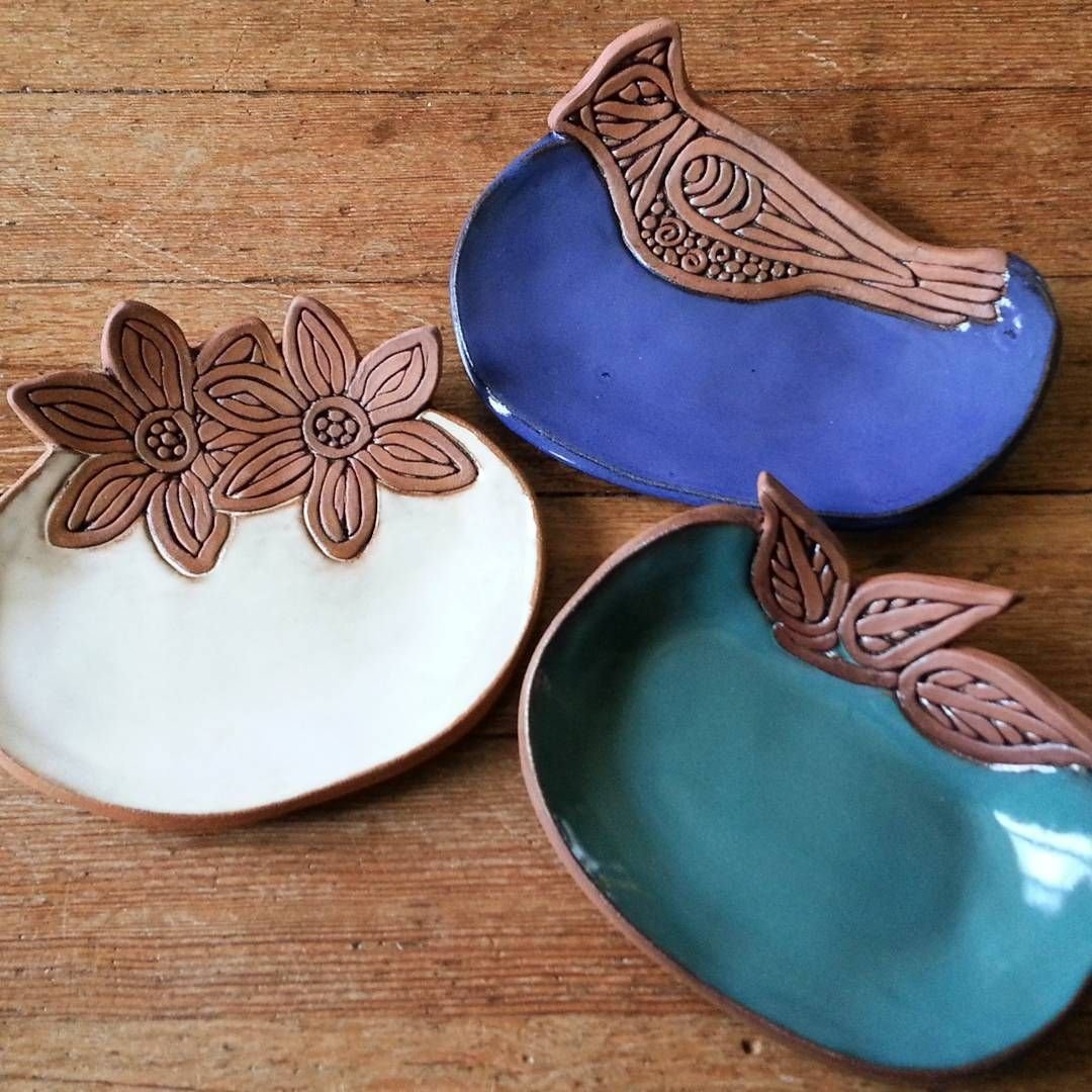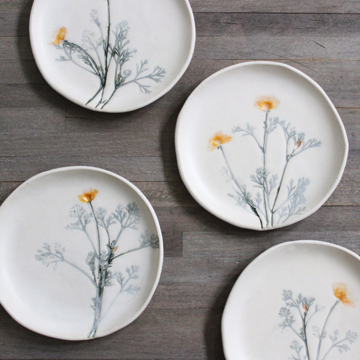 Керамические тарелки с отпечатками растений
