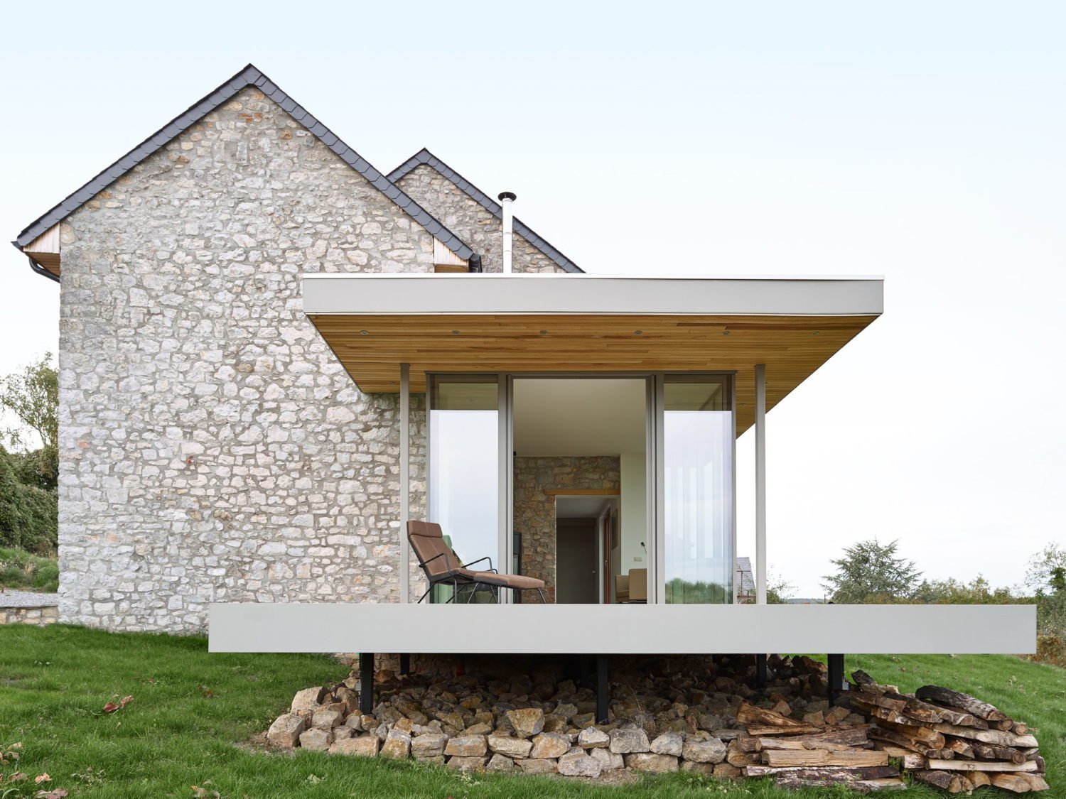 Деревянный дом с камнем
