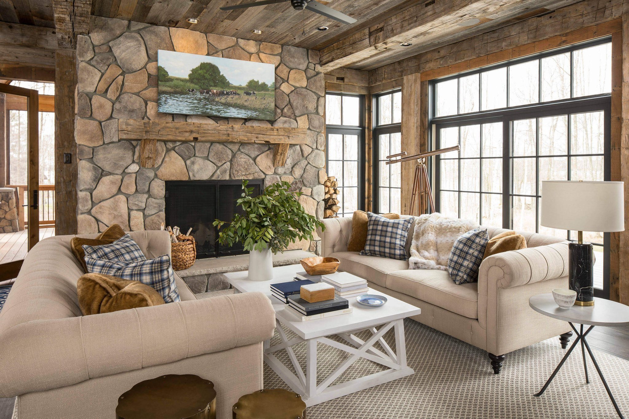 Дерево в интерьере загородного дома