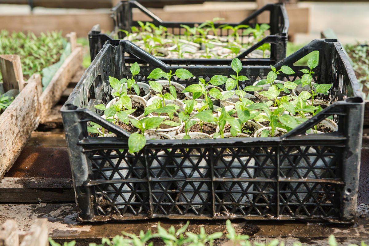 Пластиковые ящики в огороде