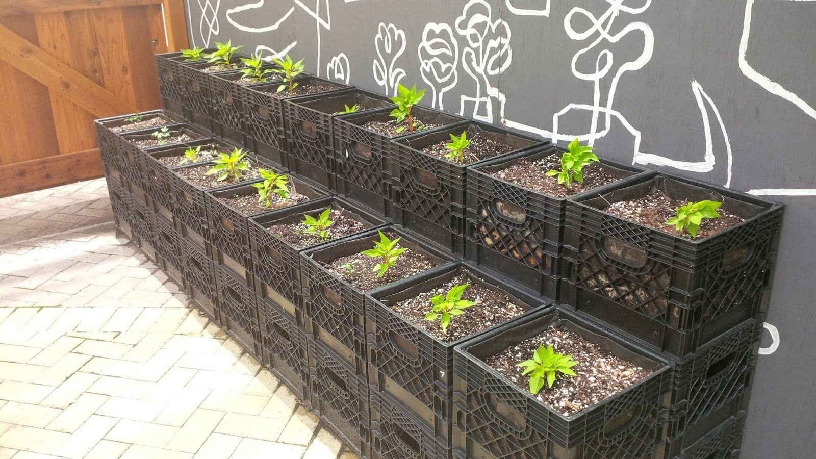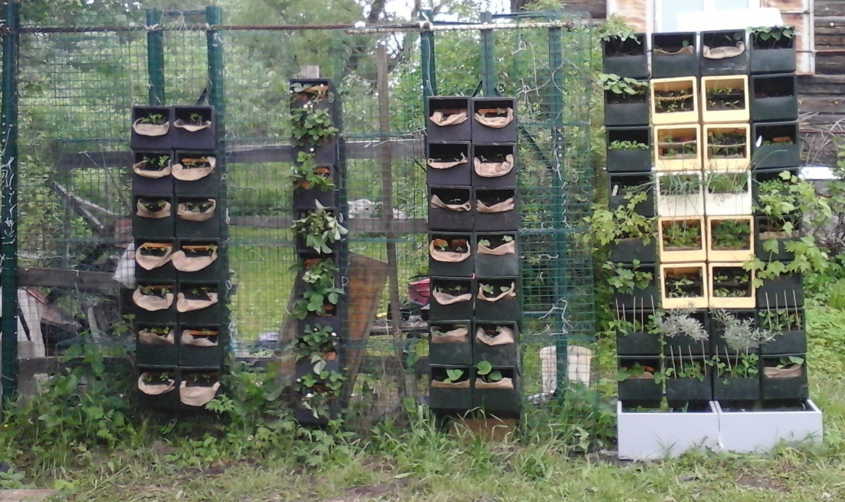 Вертикальные грядки из пластиковых ящиков