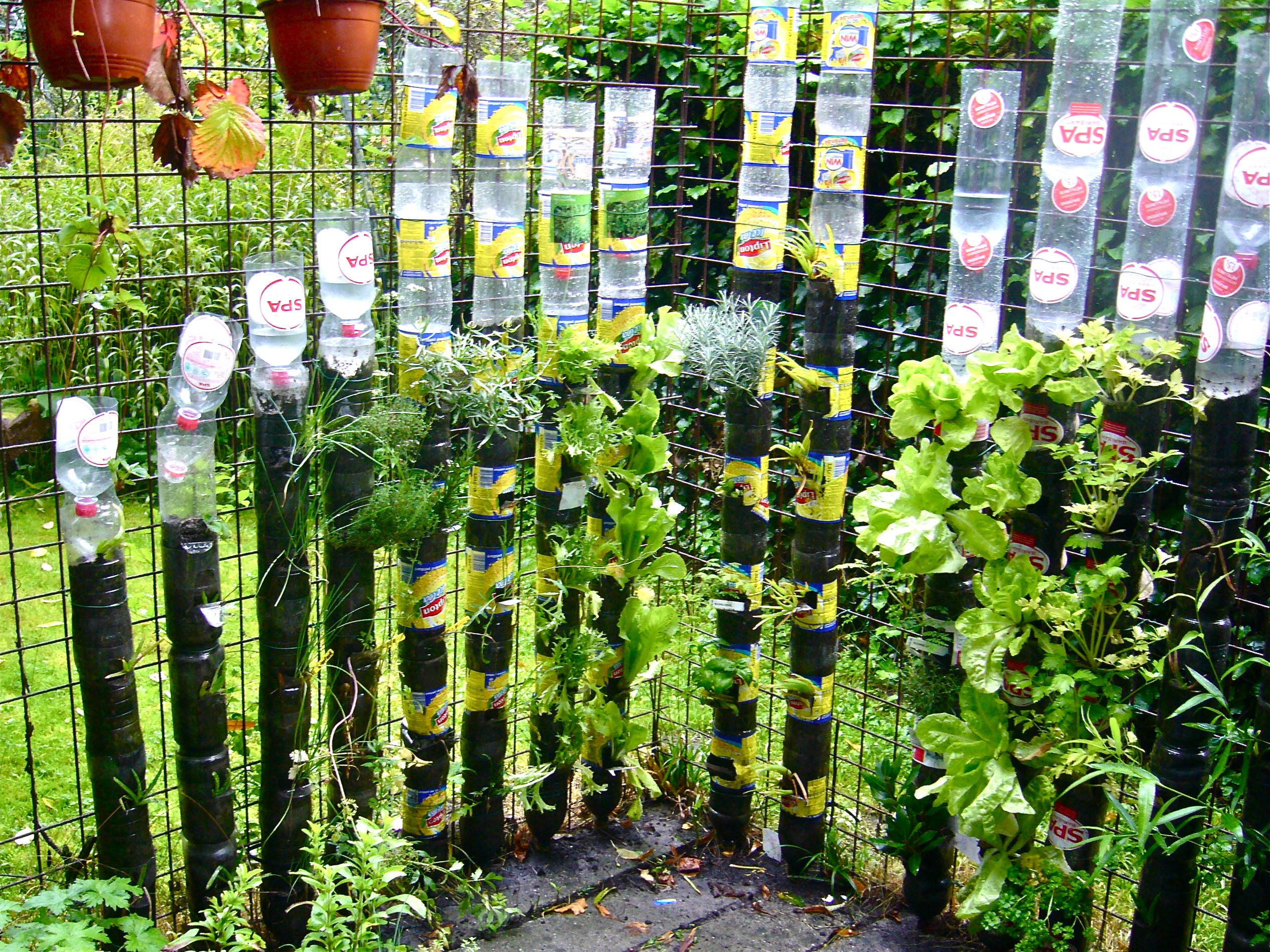 Пластиковые бутылки в огороде
