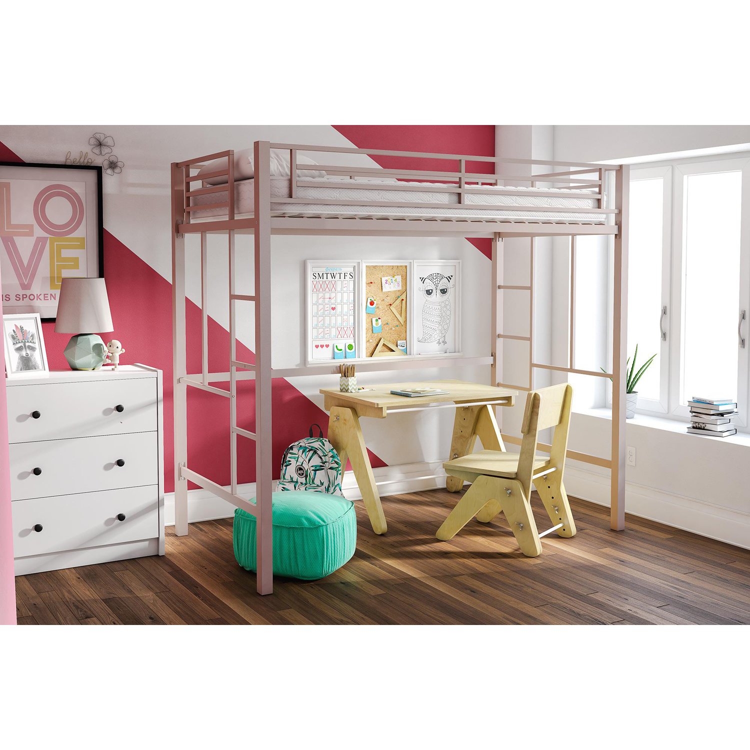 Metal Workstation Desk Twin Loft Bunk Bed