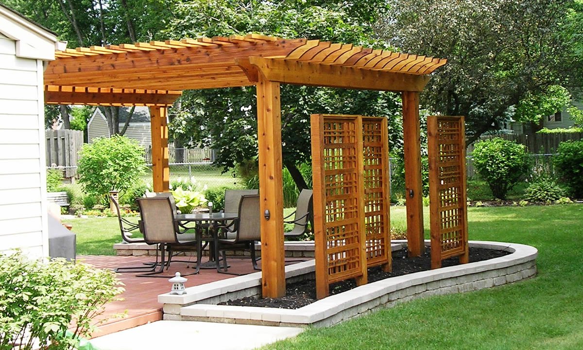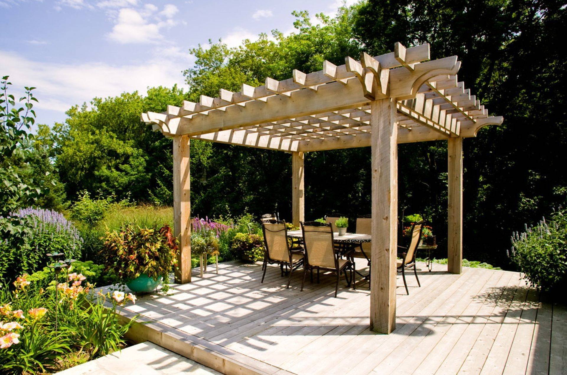Патио с перголой на даче