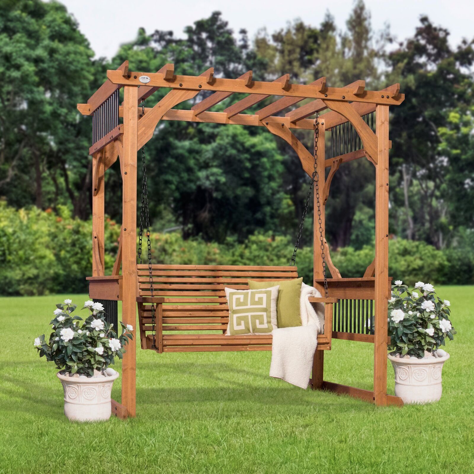 Пергола деревянная с качелями