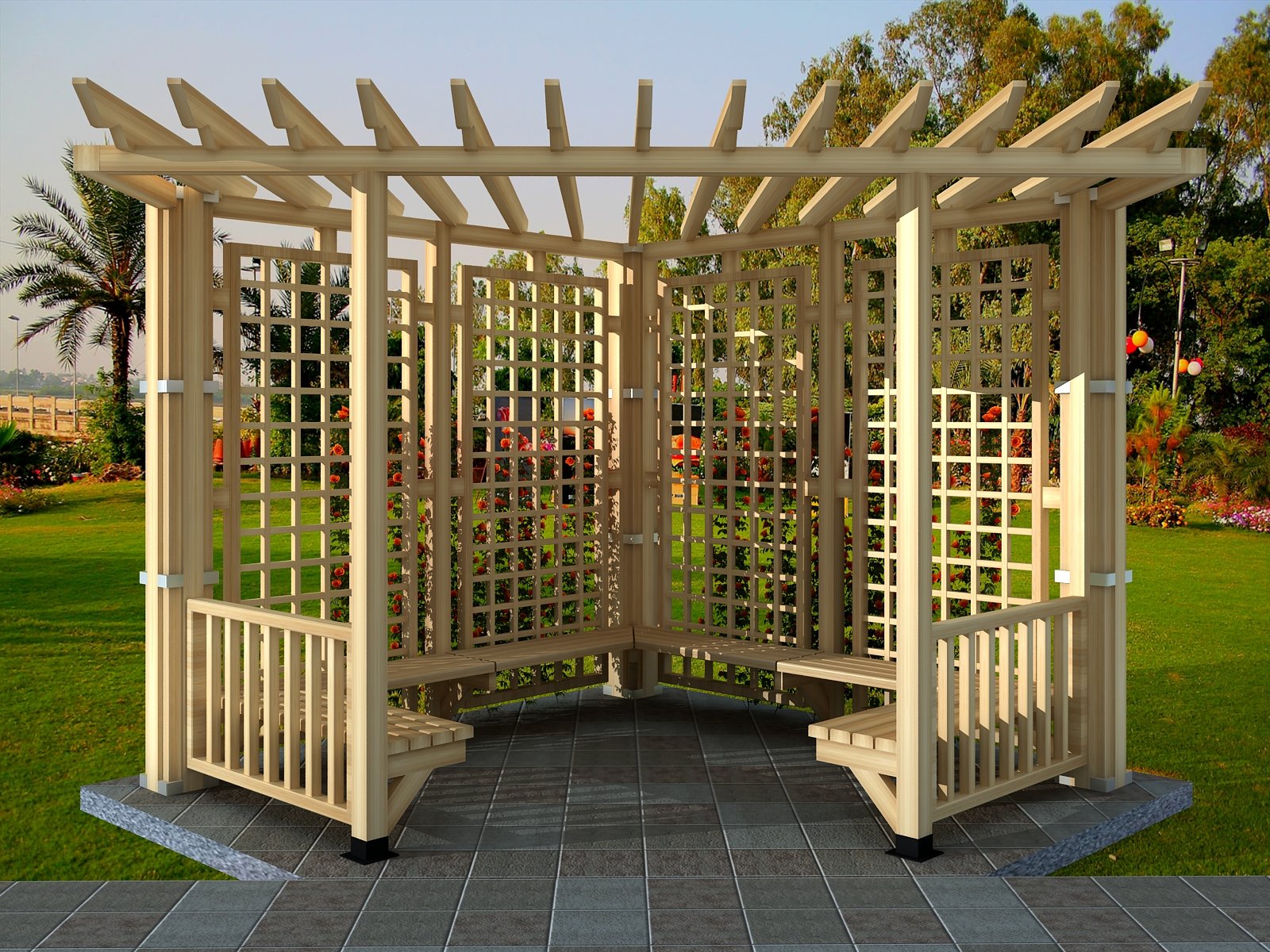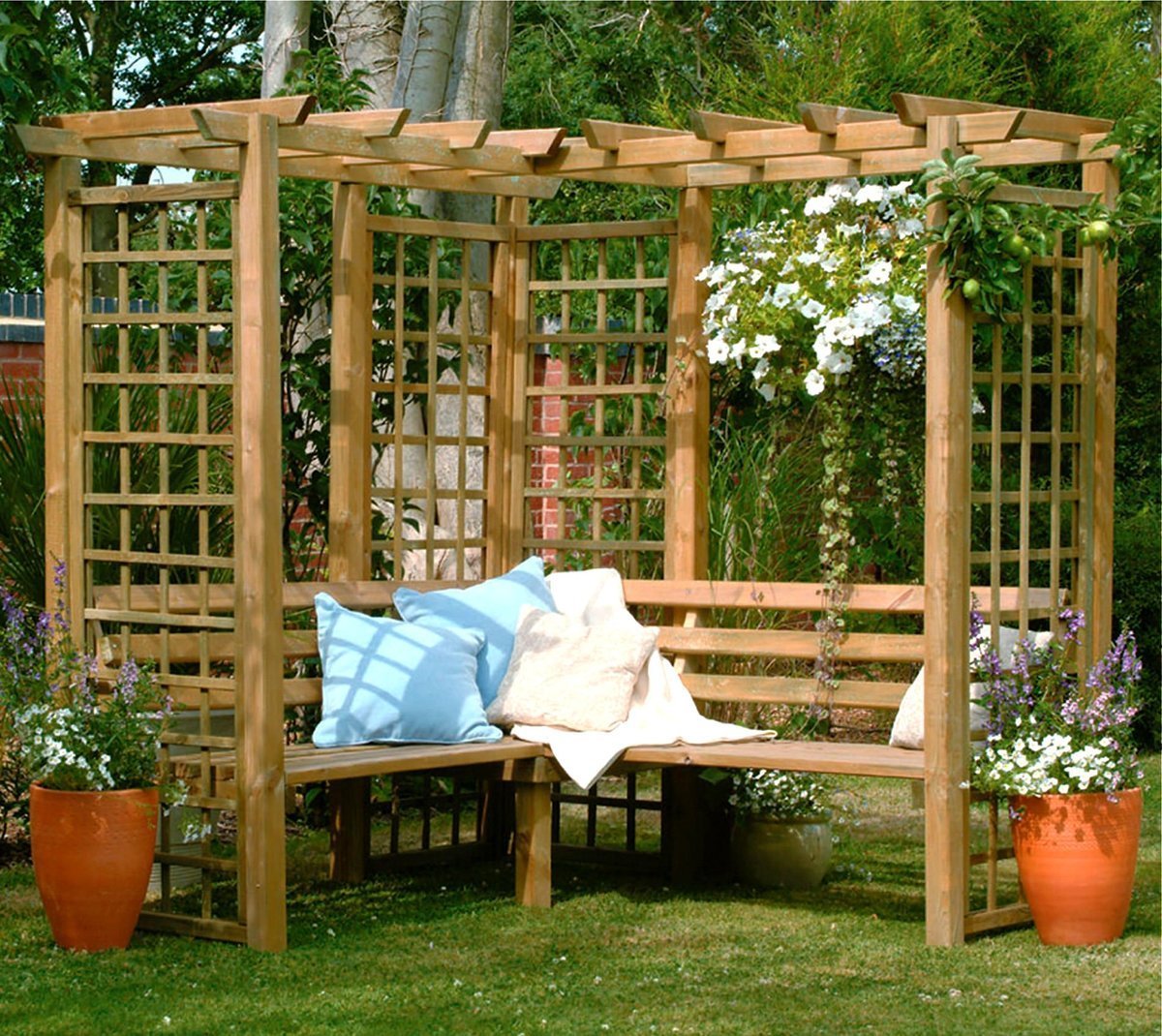 Угловая пергола со скамейкой
