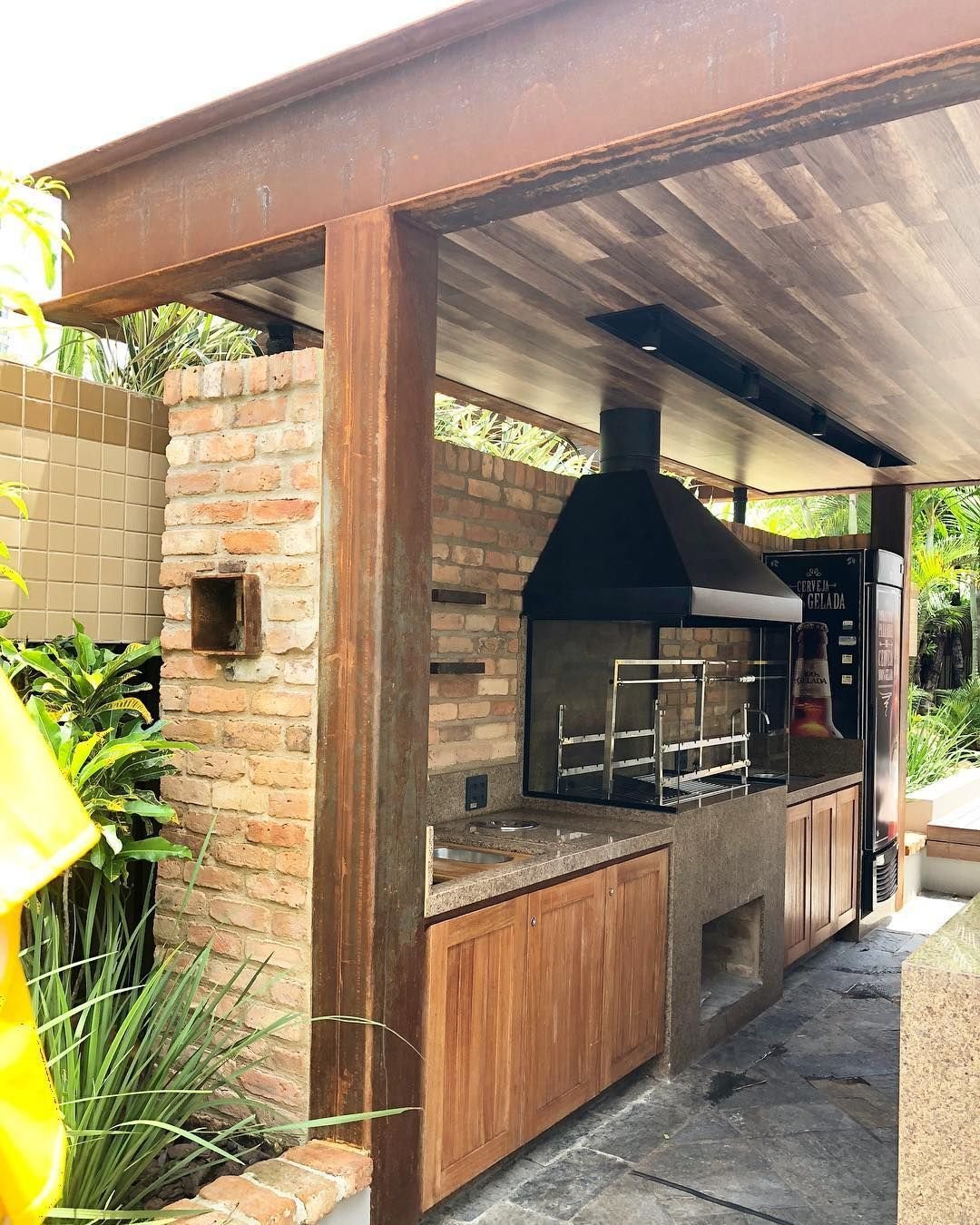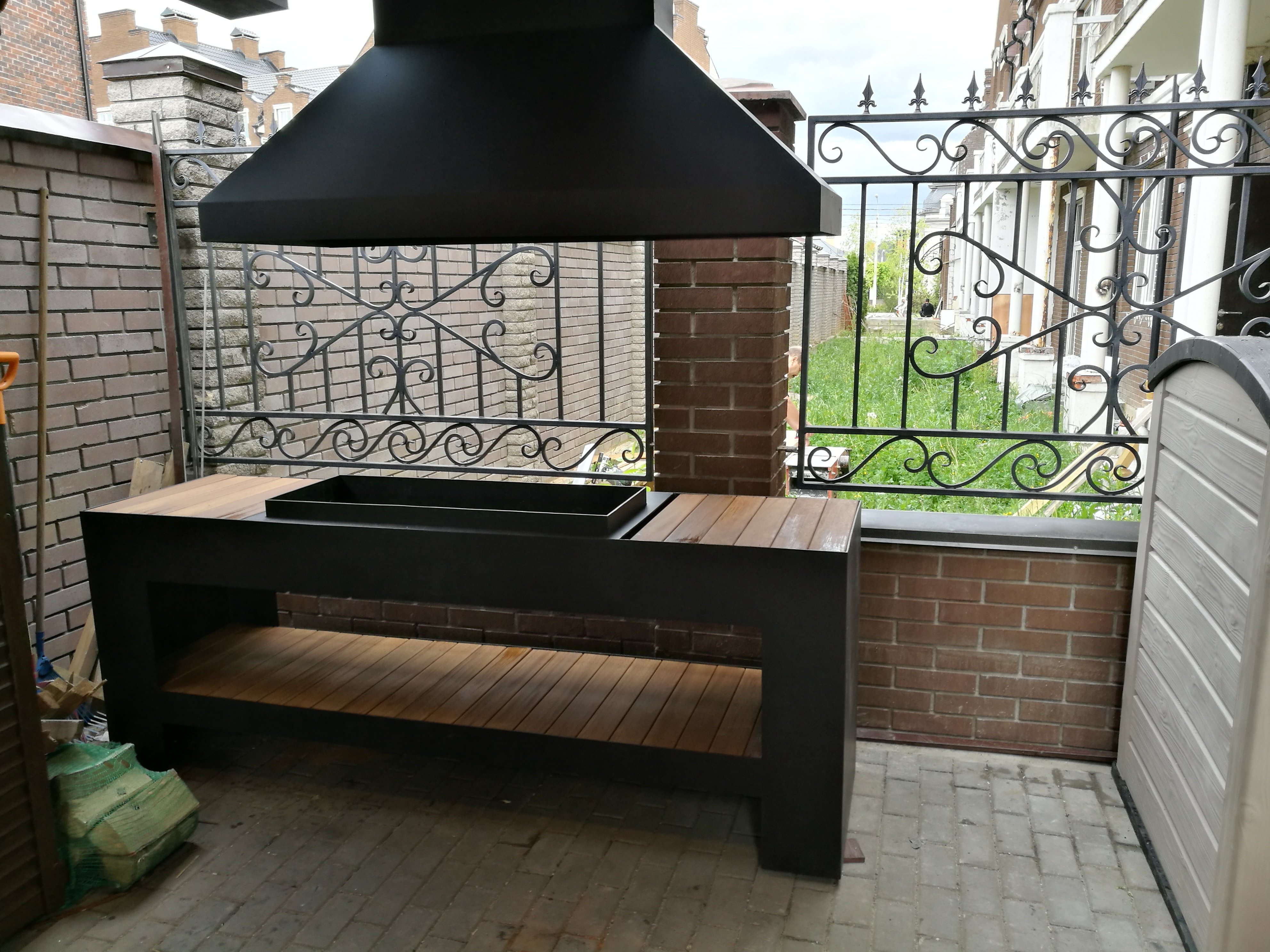 Барбекю комплекс из металла и кирпича