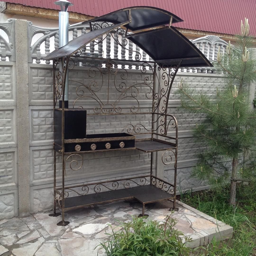 Мангал в стиле лофт с крышей
