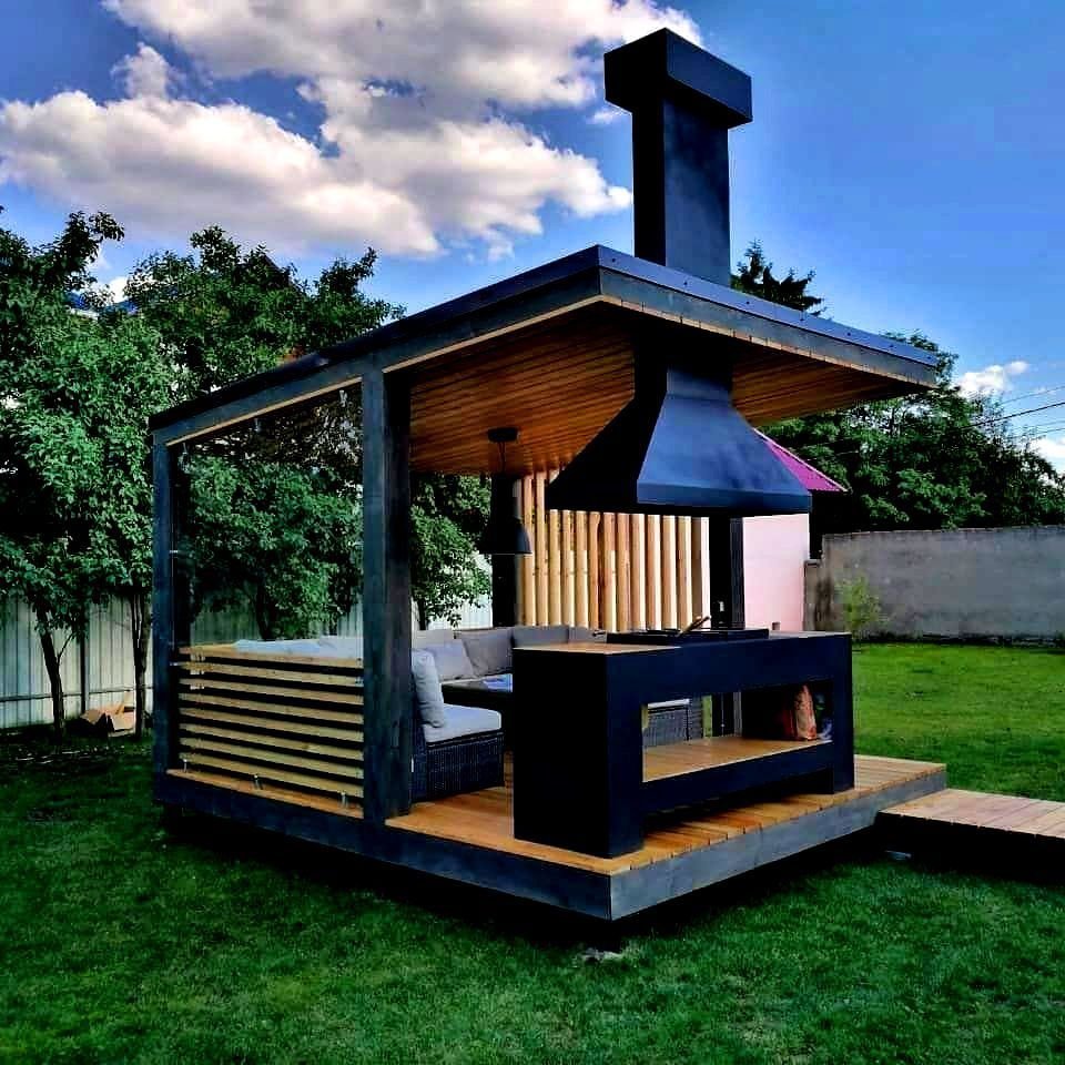 Беседка в стиле лофт с мангальной зоной