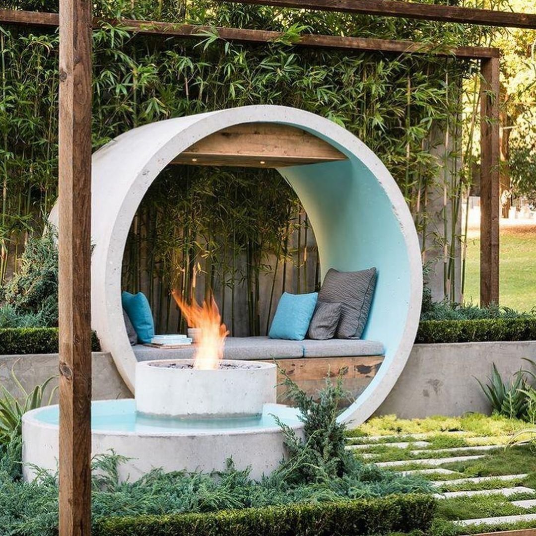 Уличная патио зона с костром