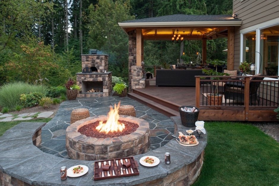 Патио с кострищем