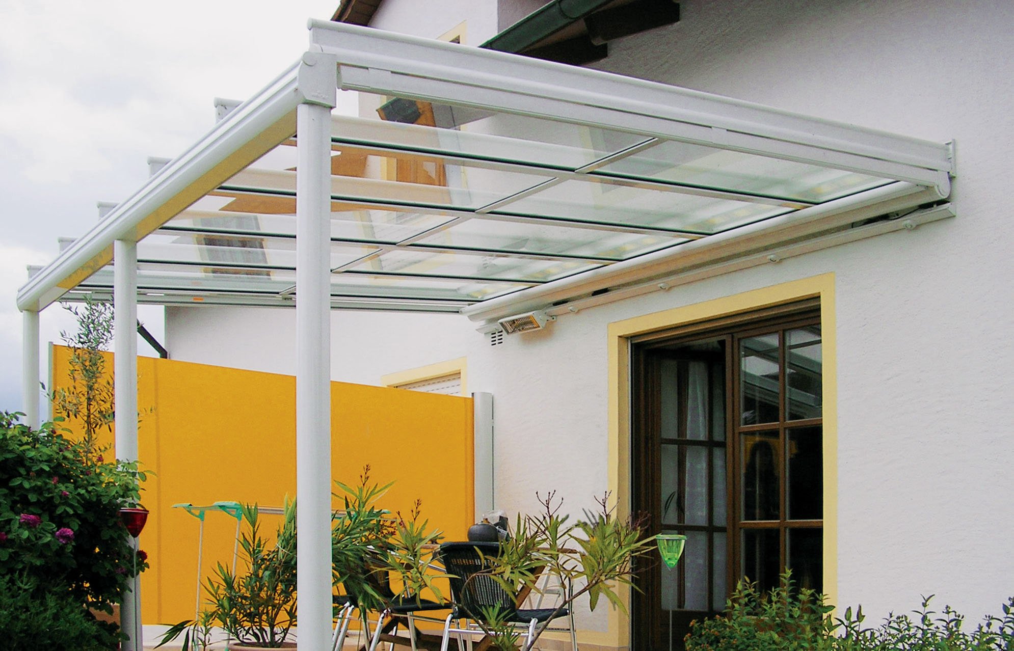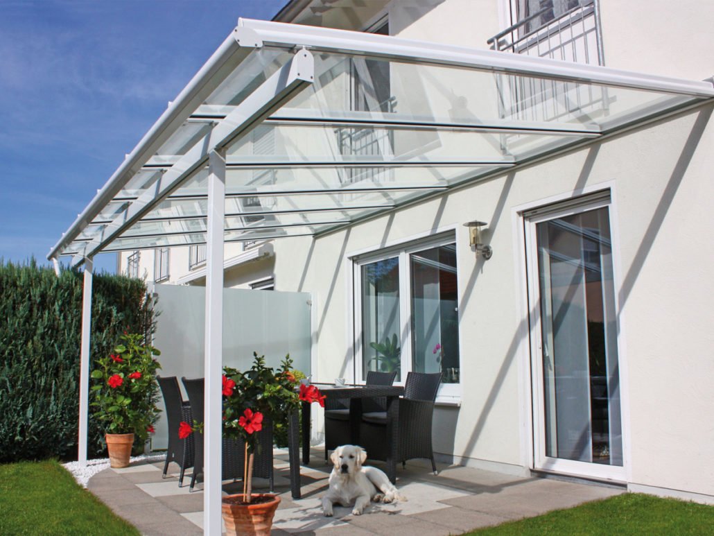 Стеклянный навес над террасой