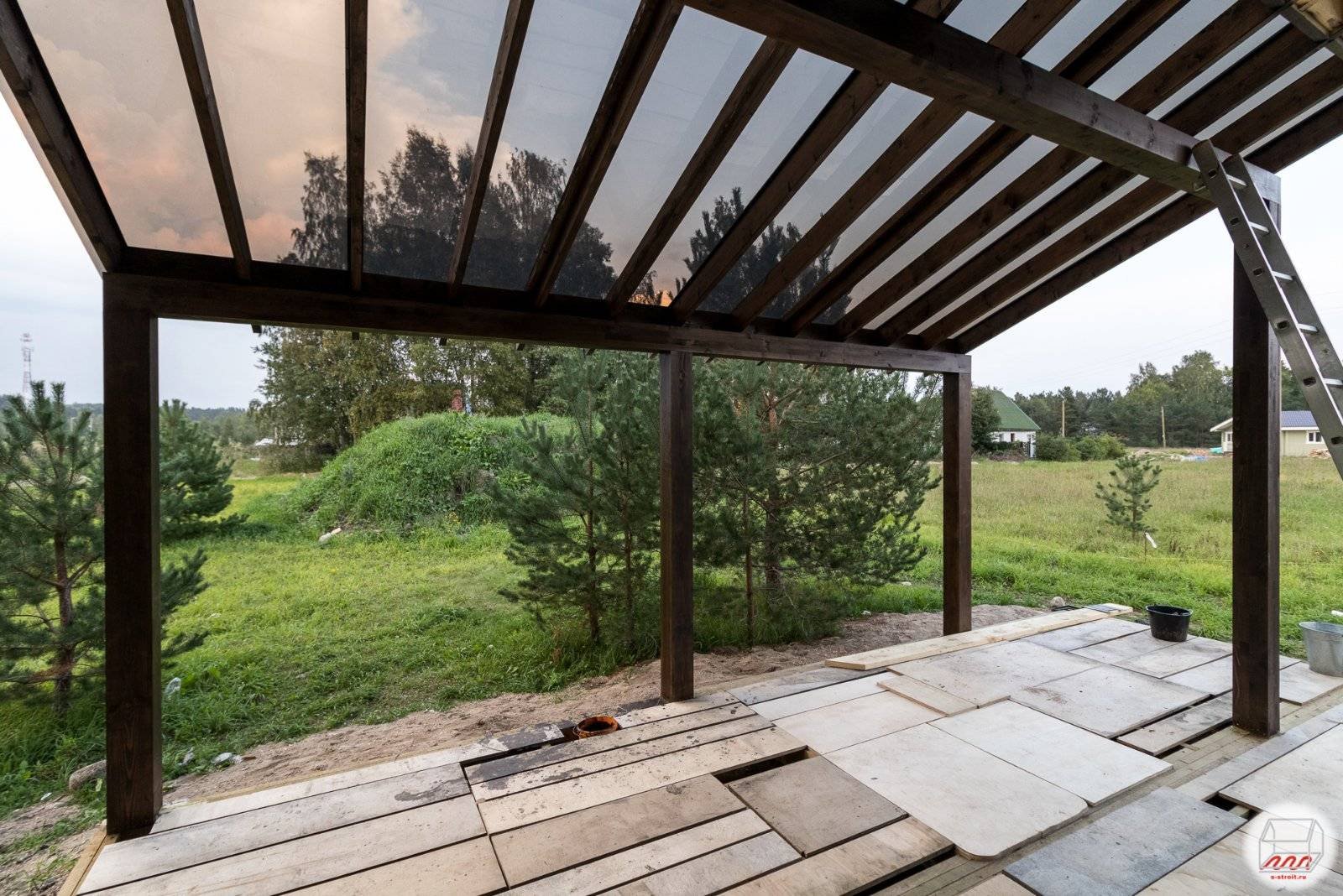 Деревянный навес из поликарбоната