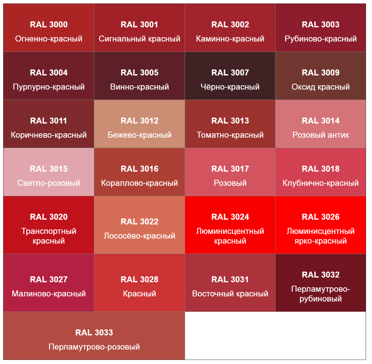 Оттенки красного