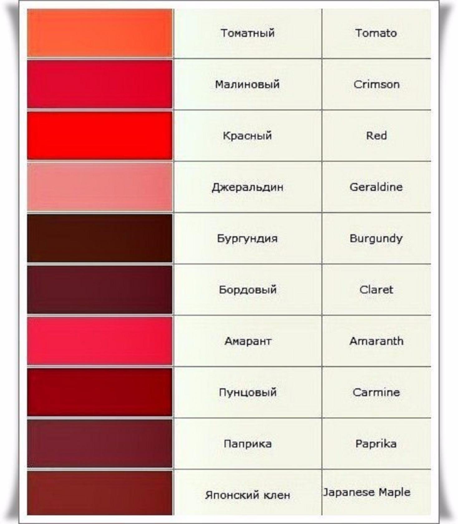 Оттенки красного цвета названия