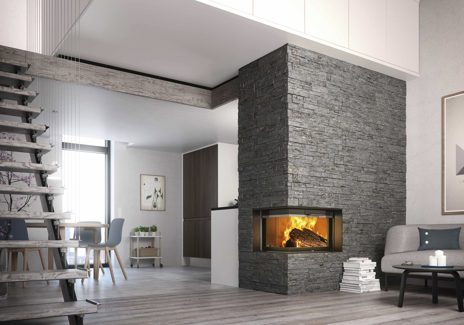 Печь камин в скандинавском стиле