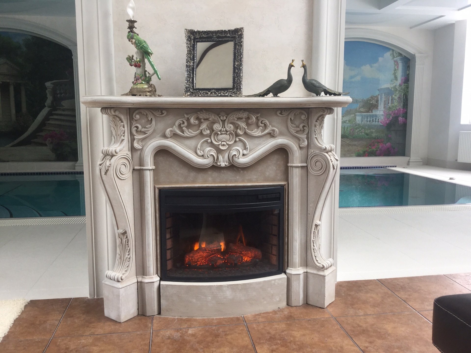 Камин с лепниной в интерьере