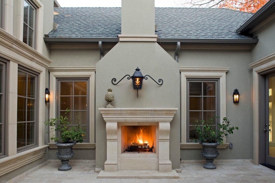 Камин на фасаде дома