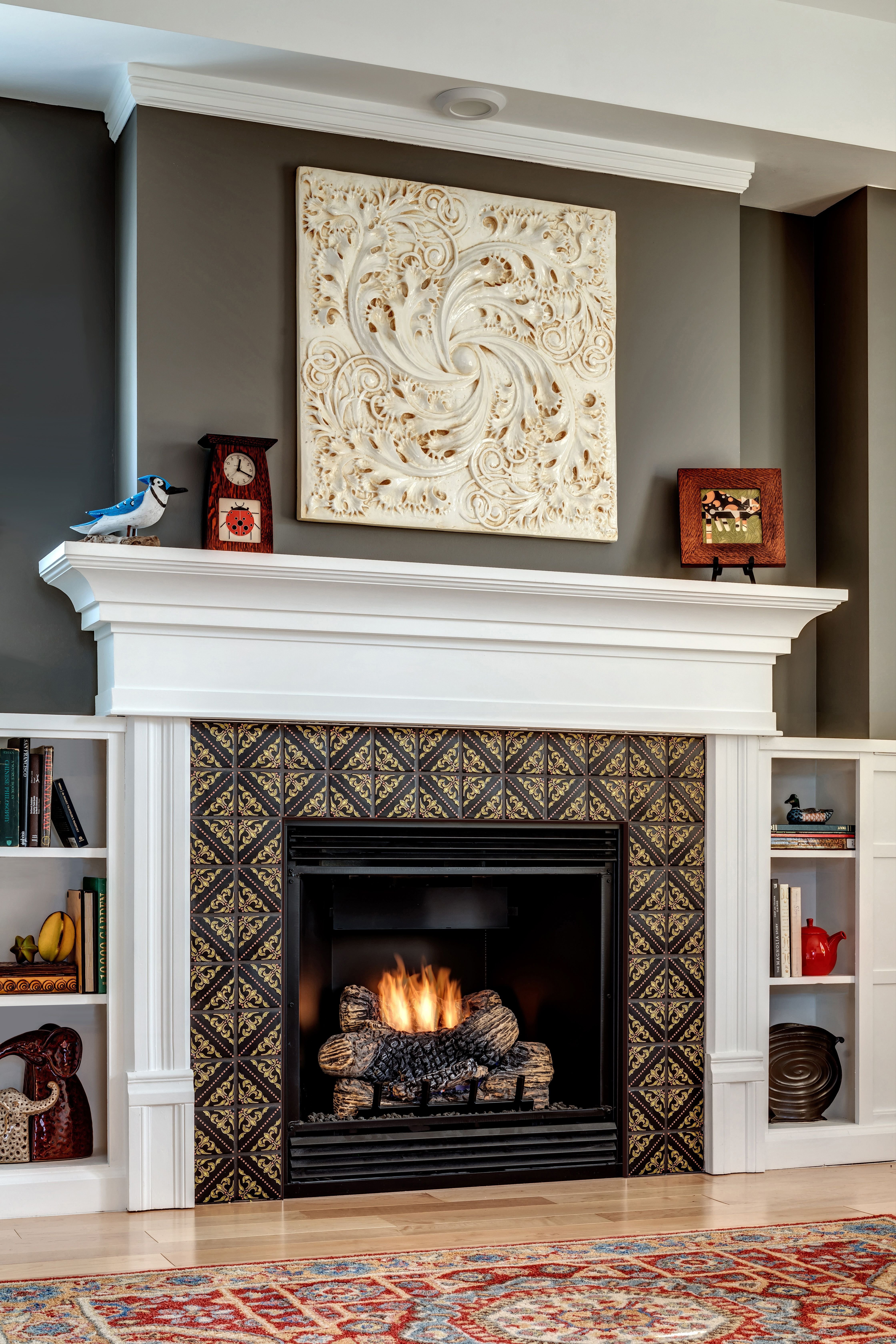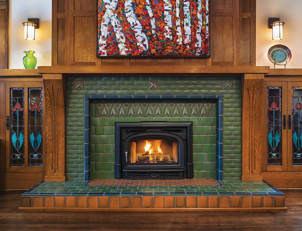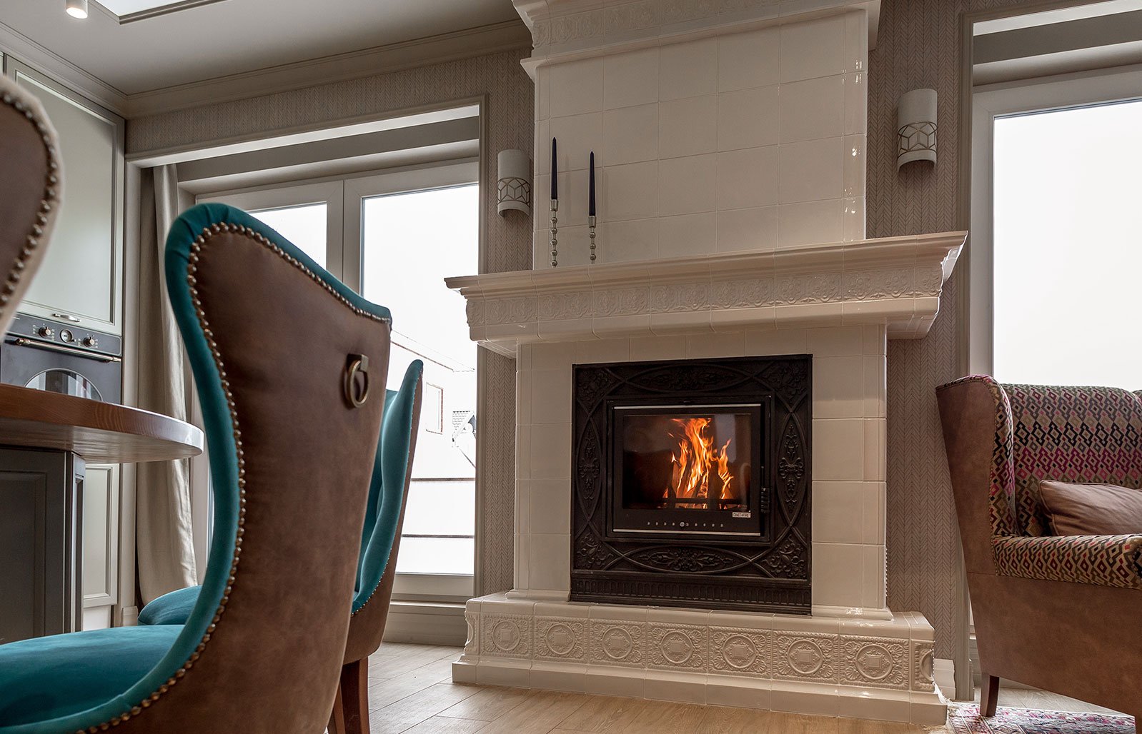 Камин с изразцами в скандинавском стиле