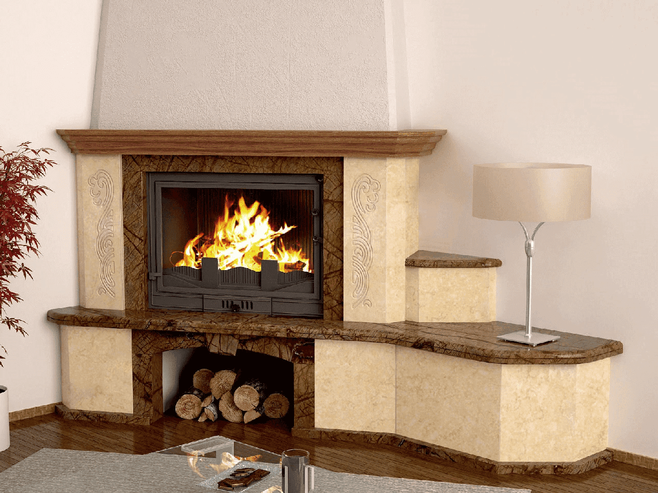 Мраморный камин в интерьере