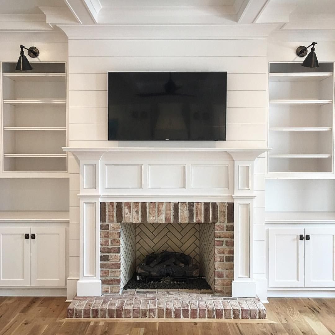 Камин в стене из кирпича