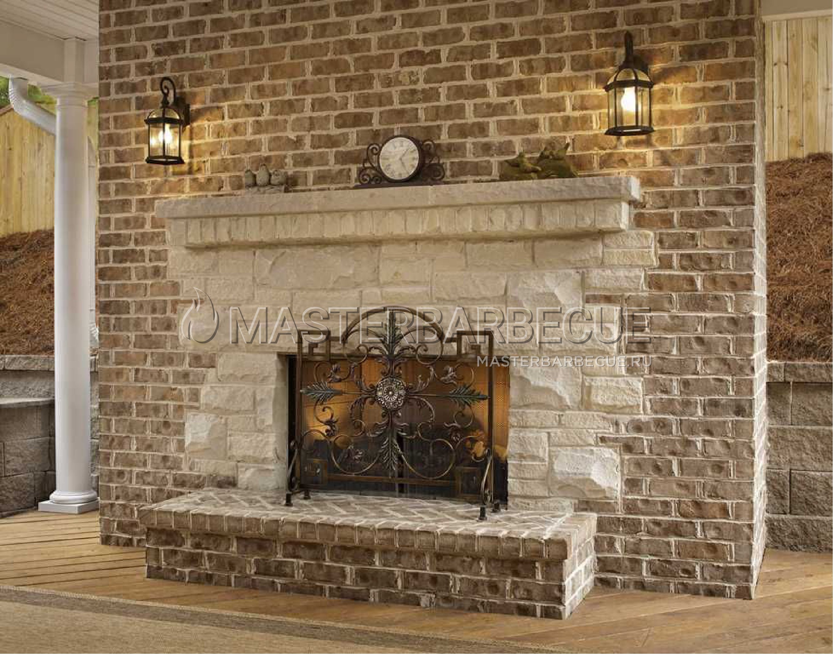 Камин из светлого кирпича