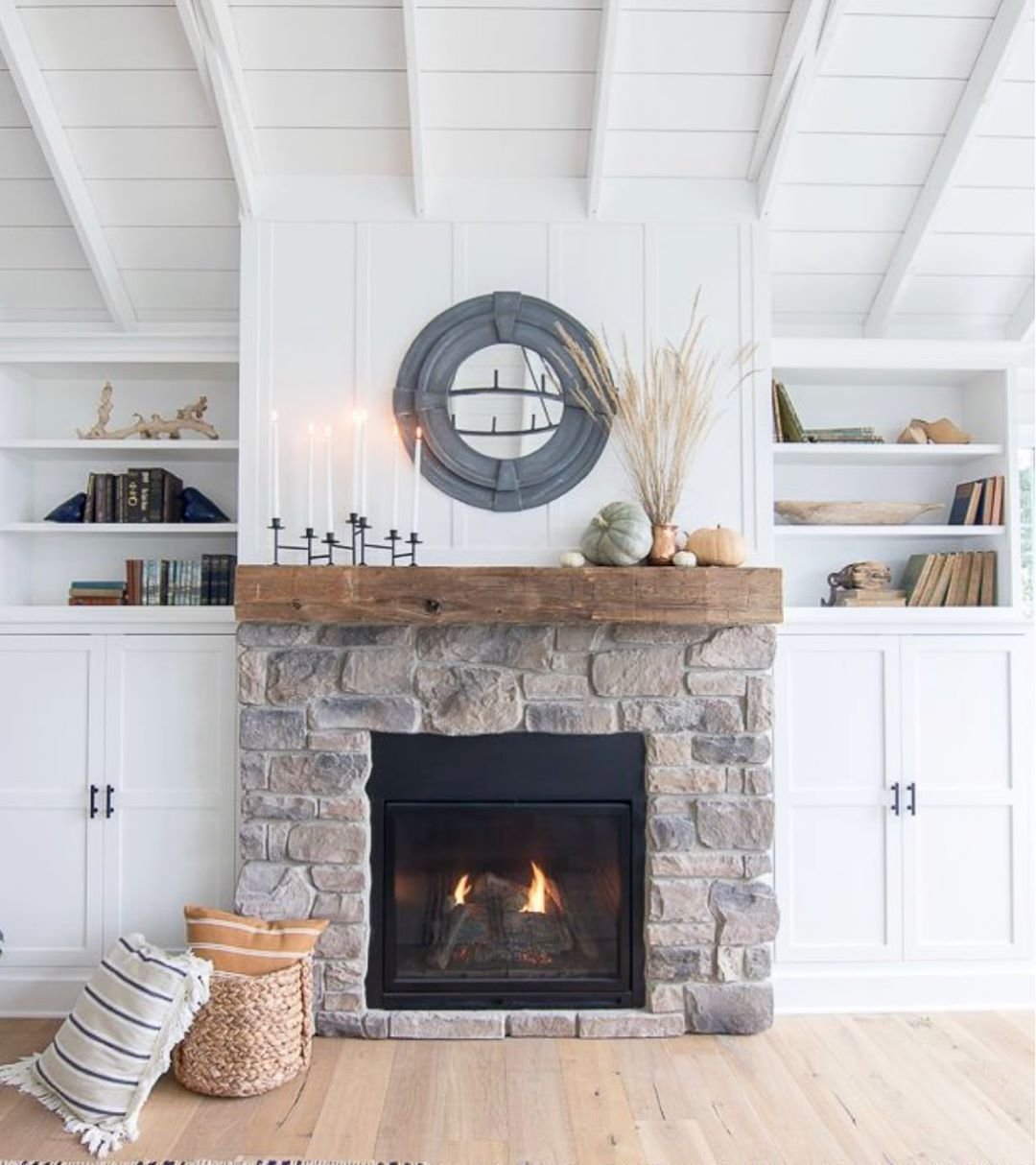 Камин в Кантри стиле из булыжника