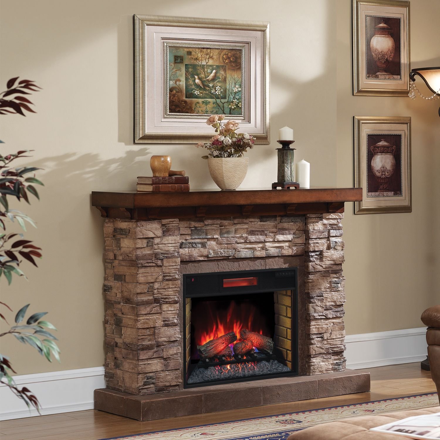 Электрические камины Отделанные камнем
