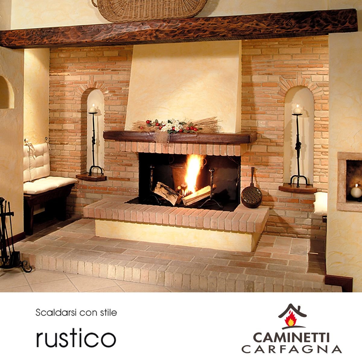 Камин на фоне кирпичной стены