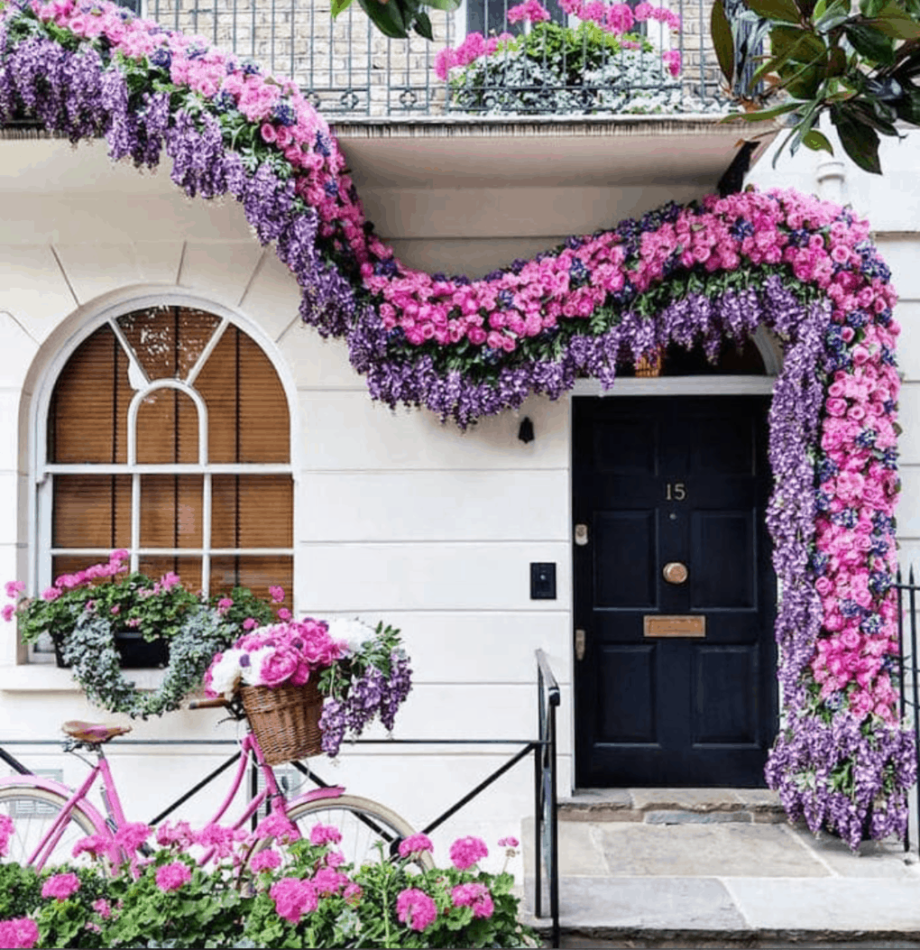 Украшение входной группы цветами