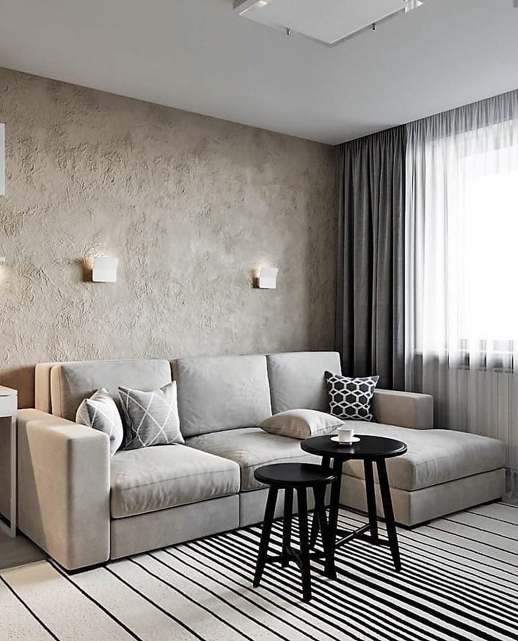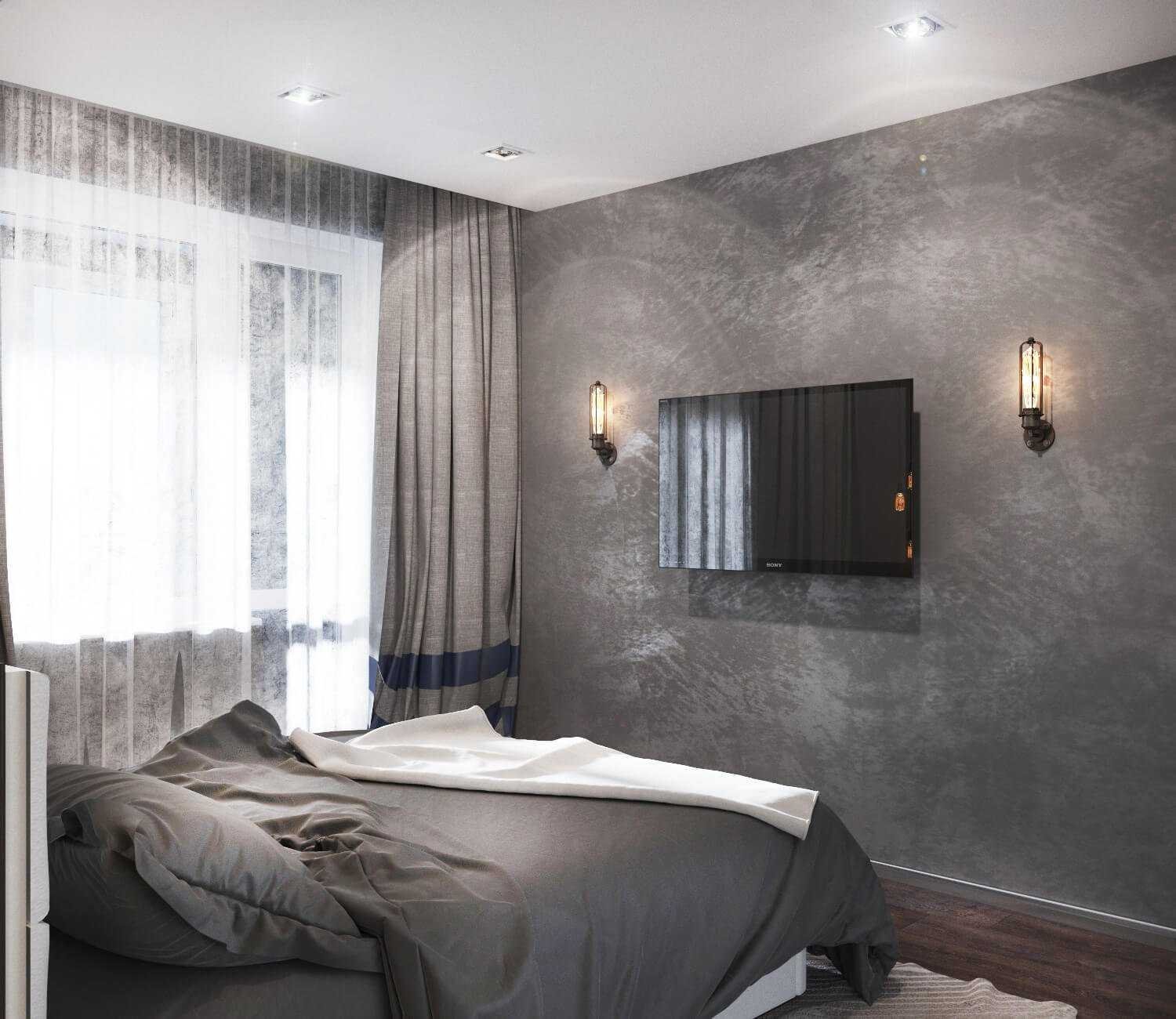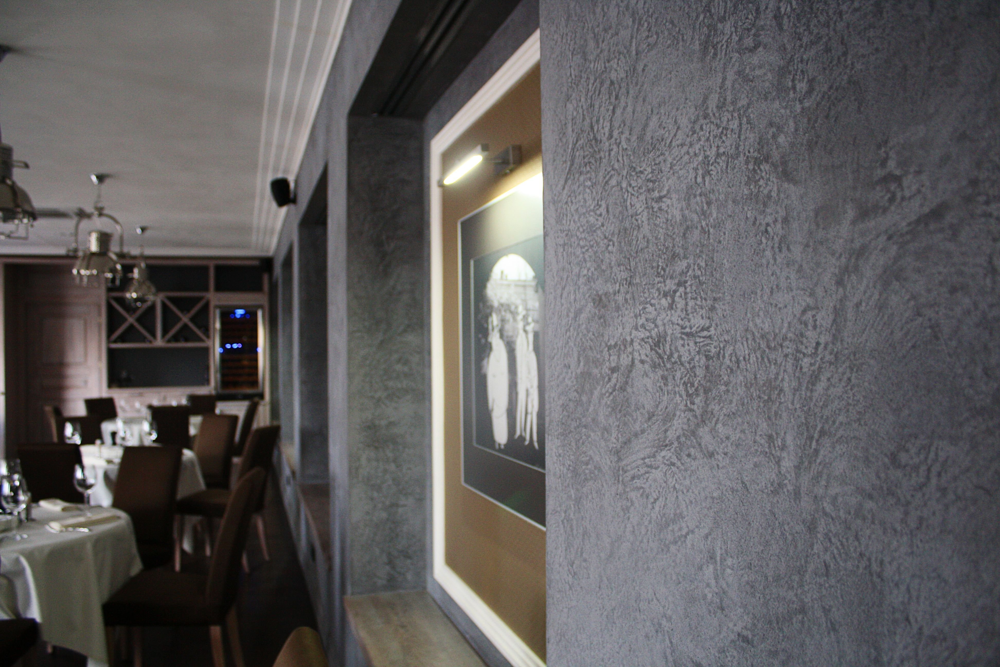 Серая фактурная штукатурка в интерьере