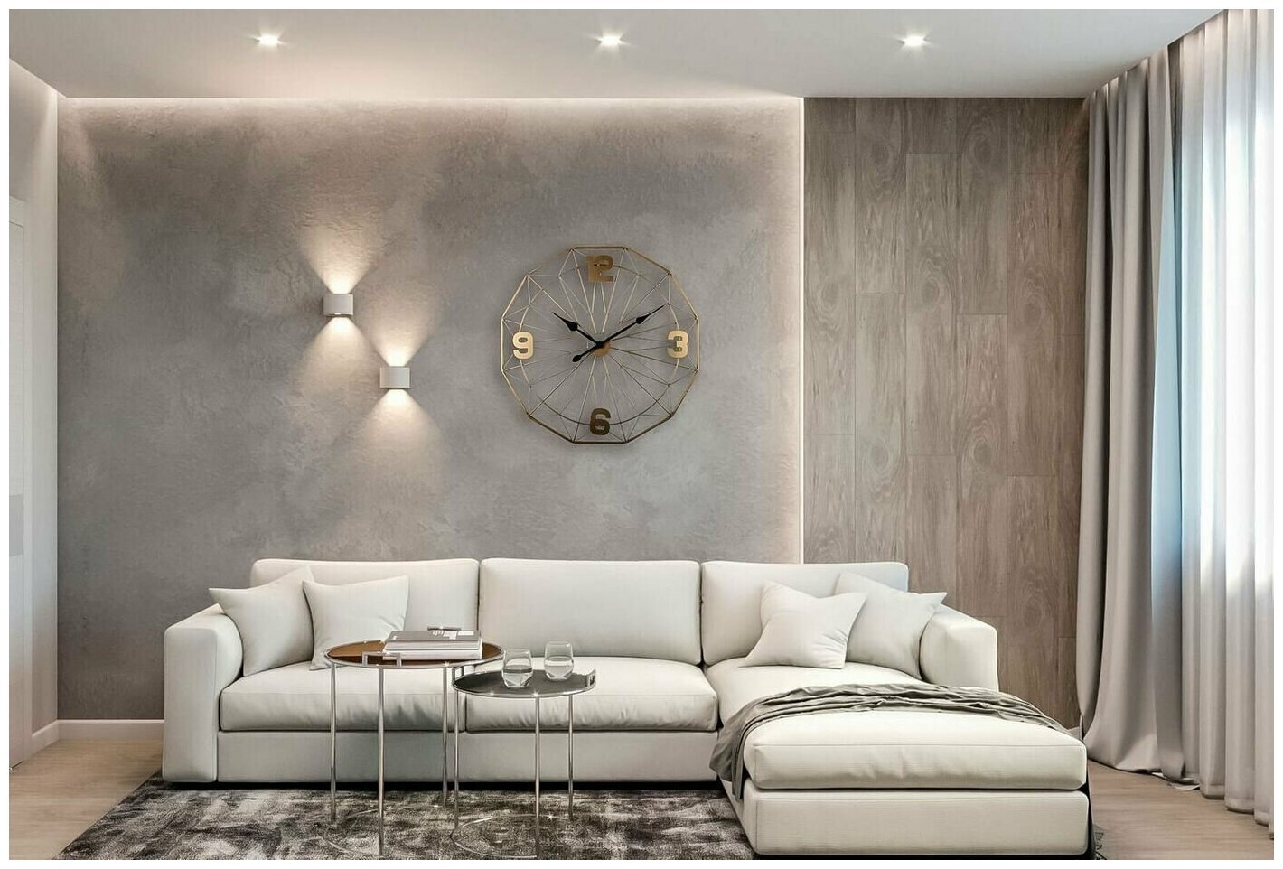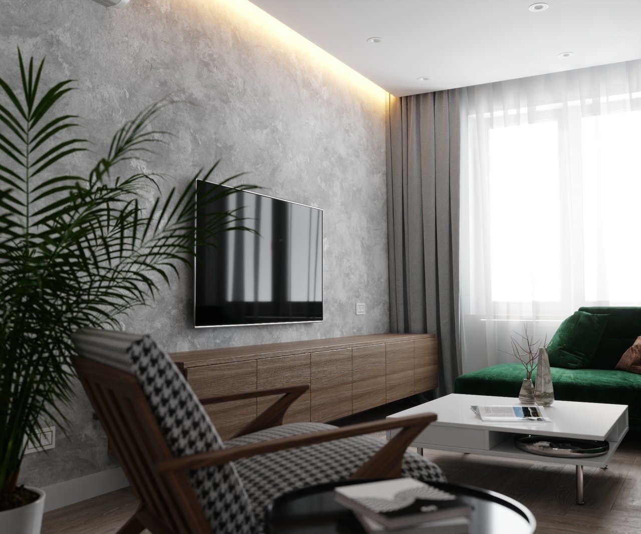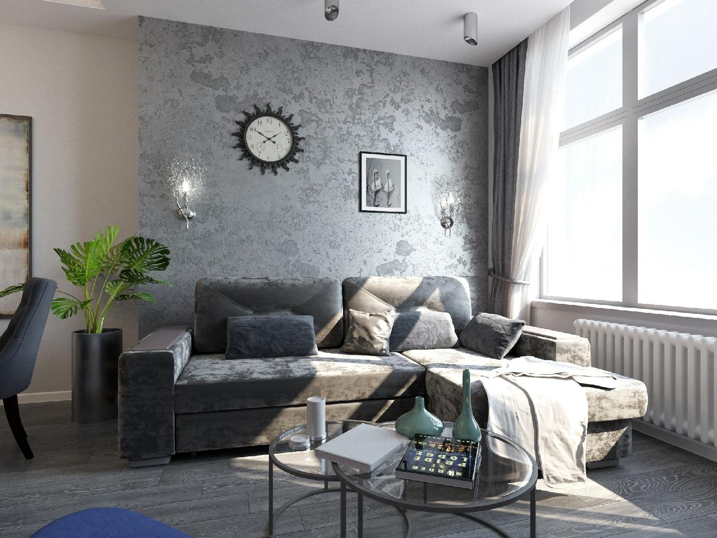 Серая декоративная штукатурка в гостиной