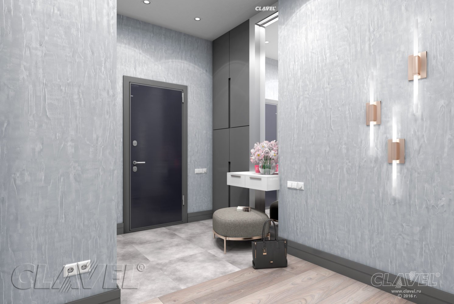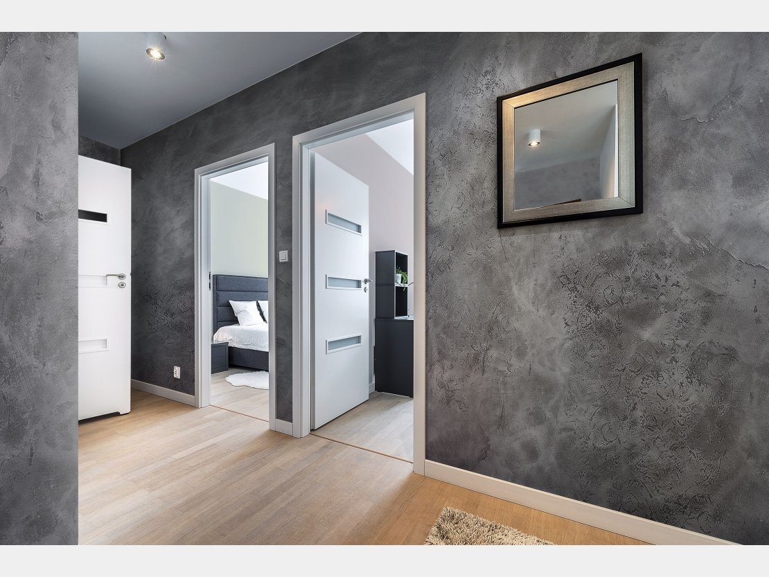 Серая декоративная штукатурка в коридоре