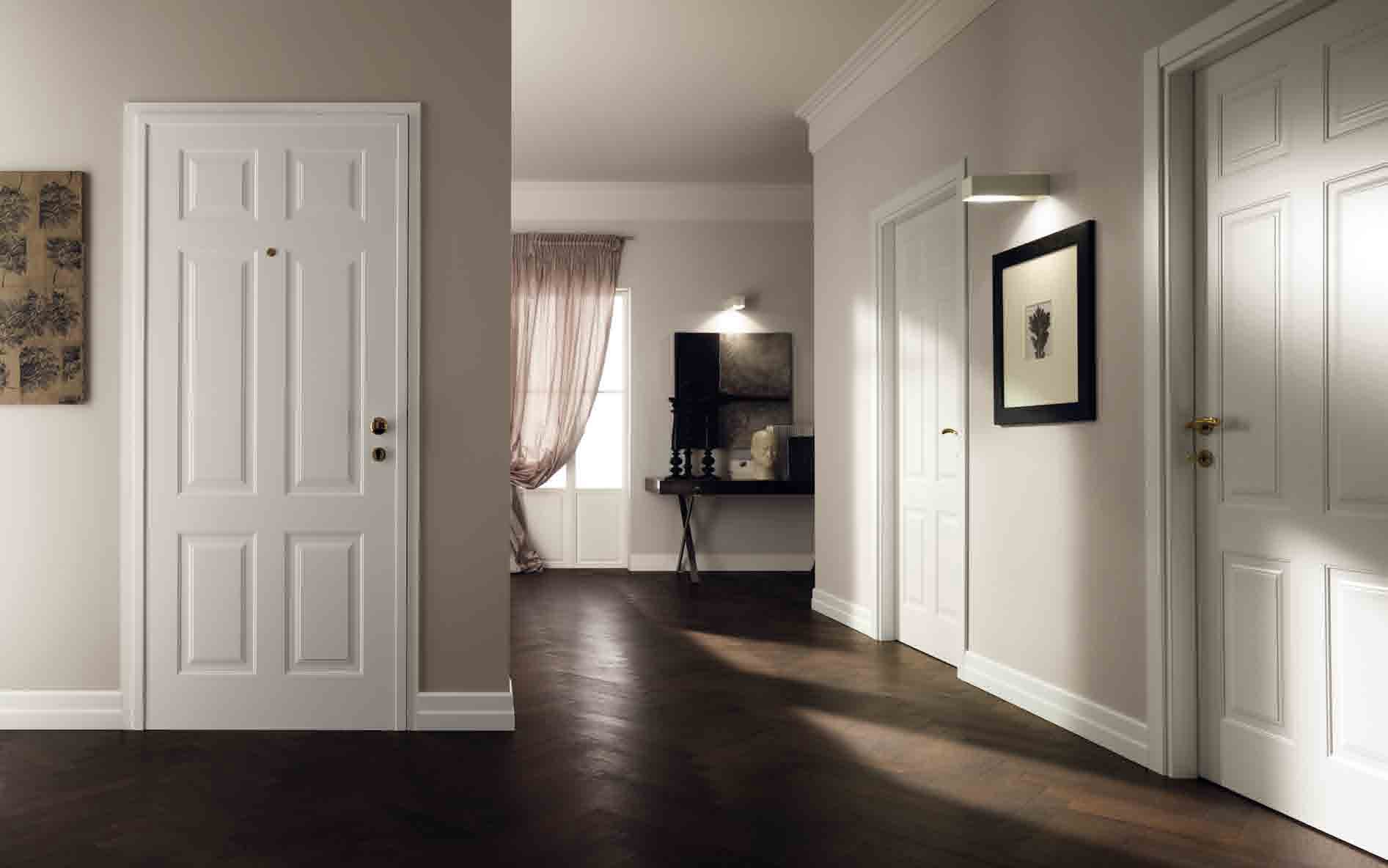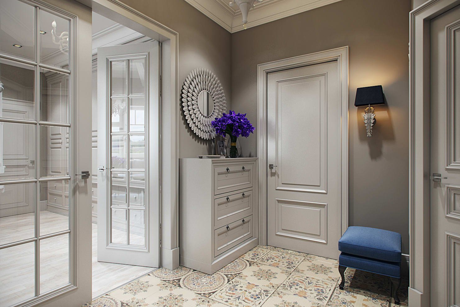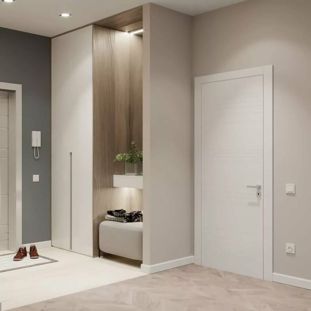 Интерьер прихожей с белыми дверями
