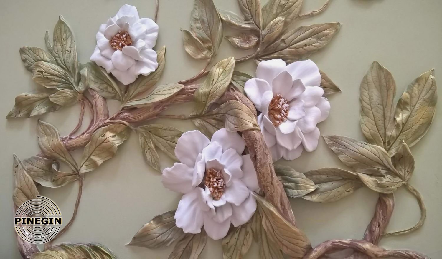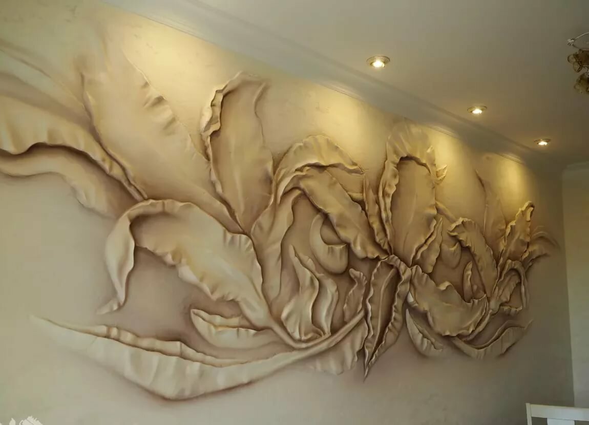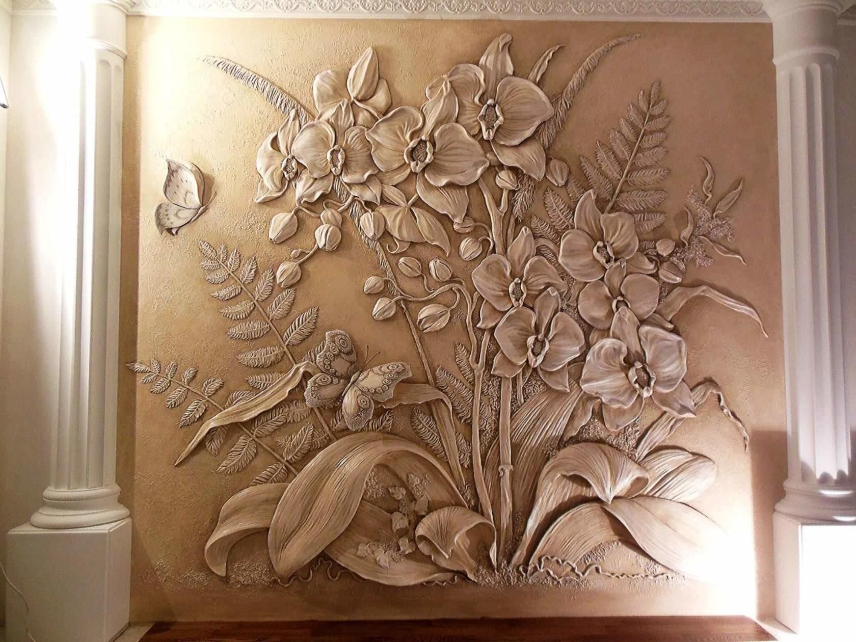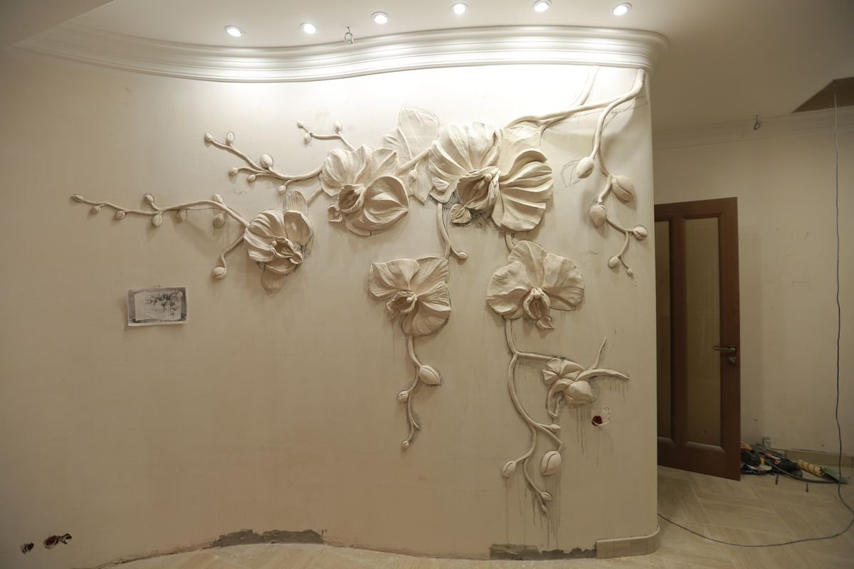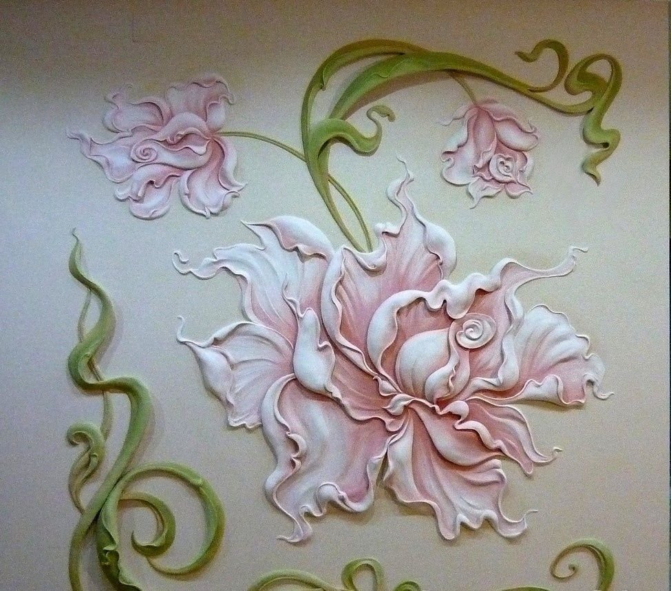 Лепка на стене цветы