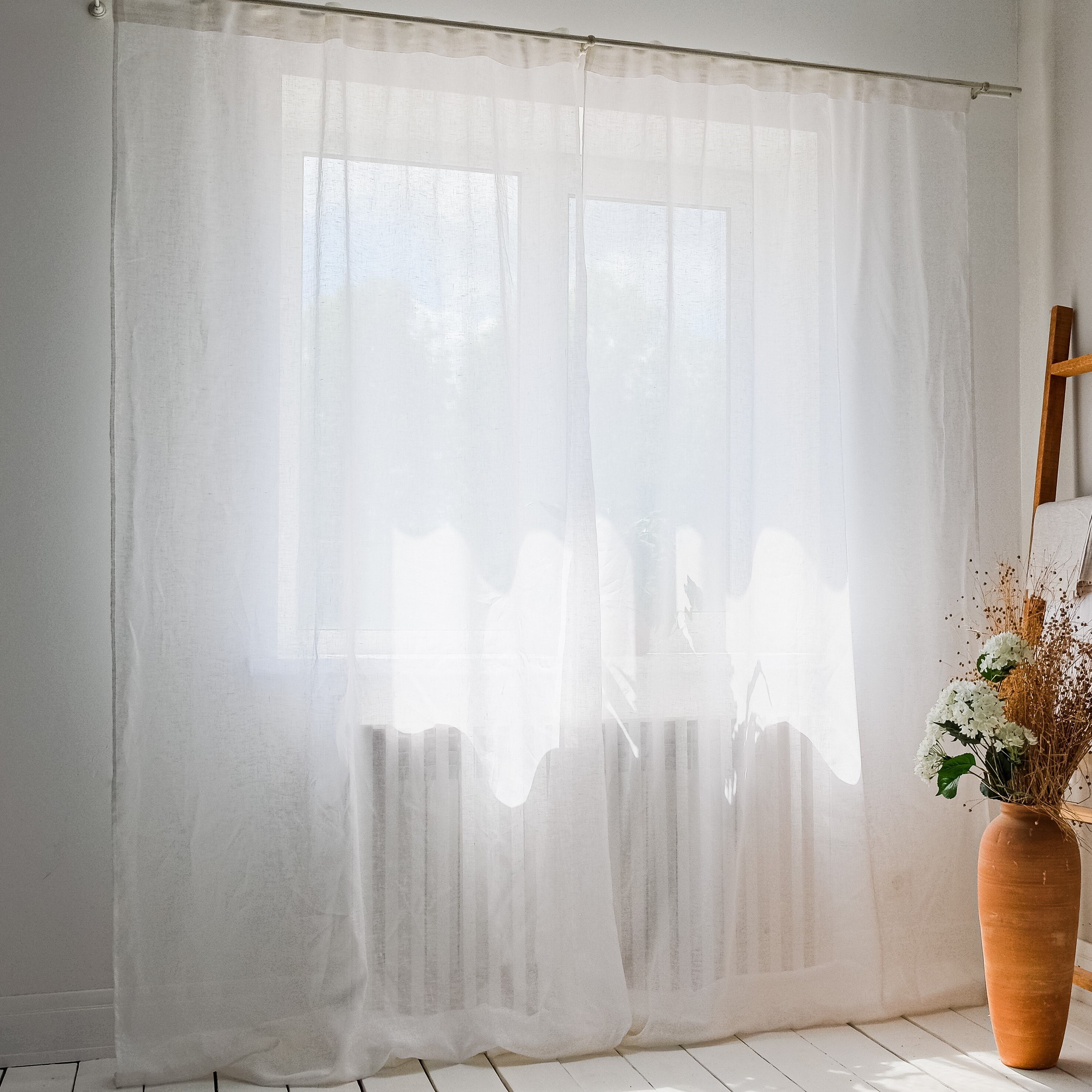 Белые льняные шторы