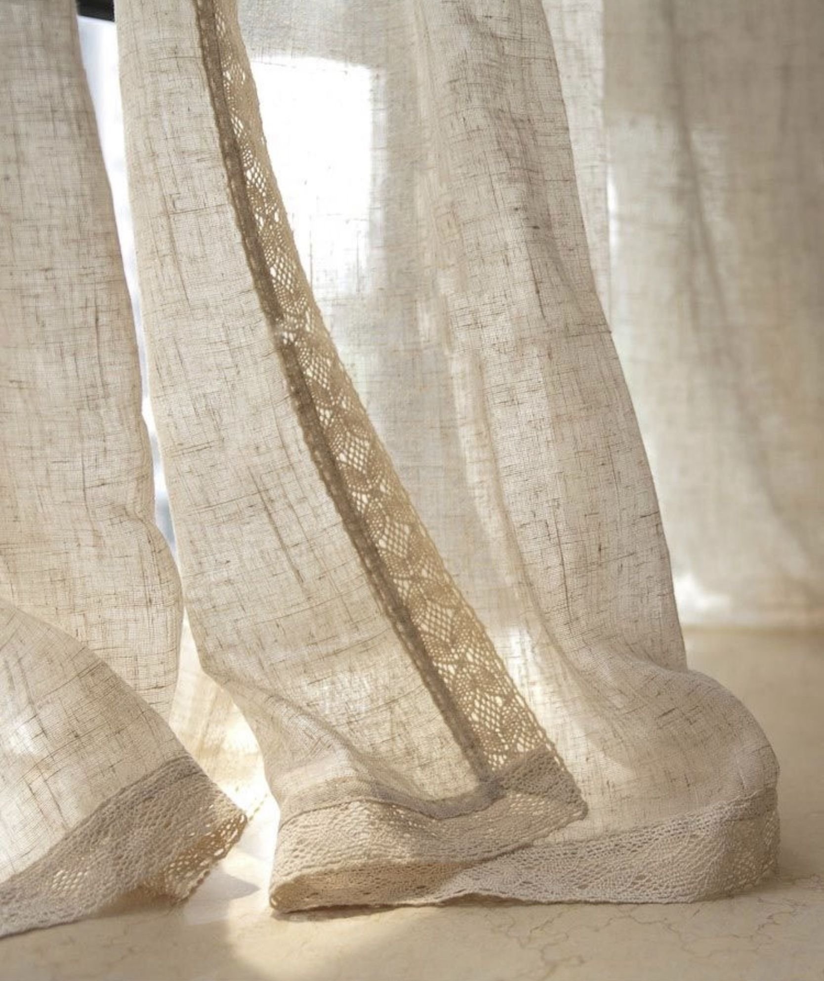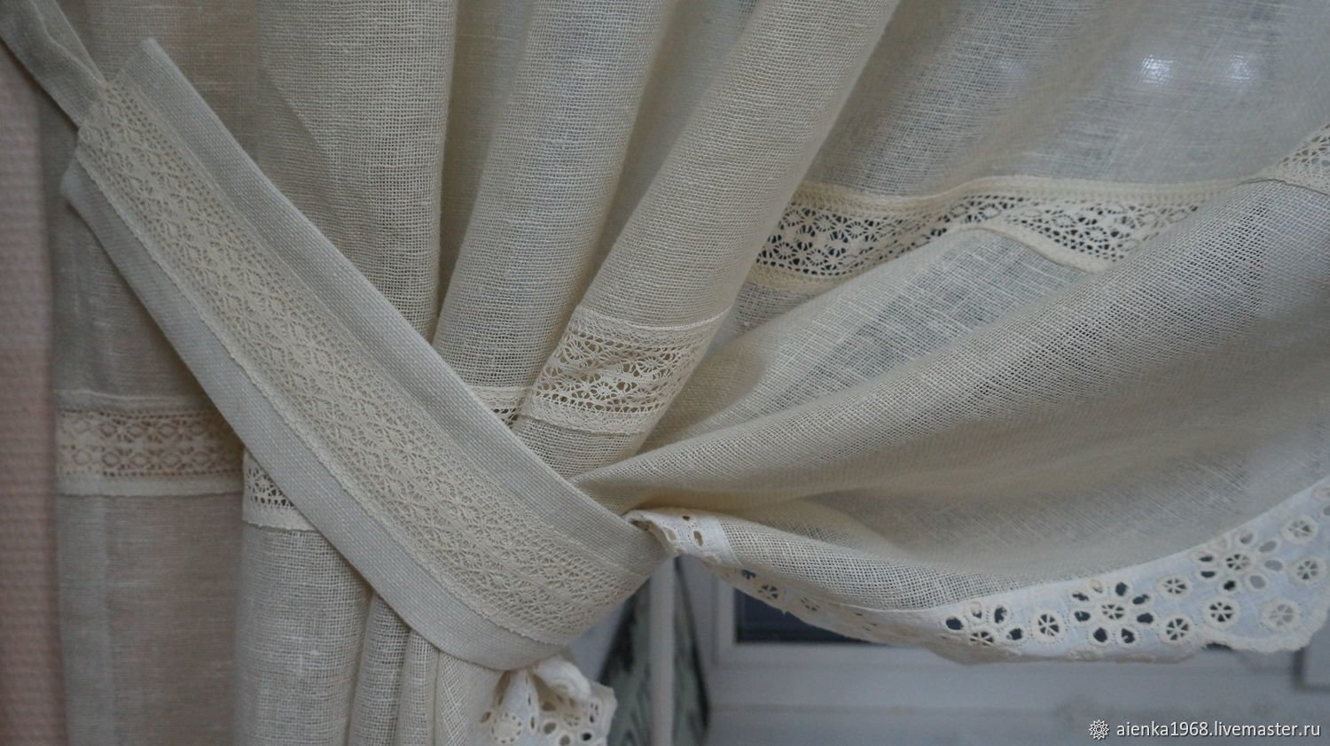 Льняные занавески с кружевом